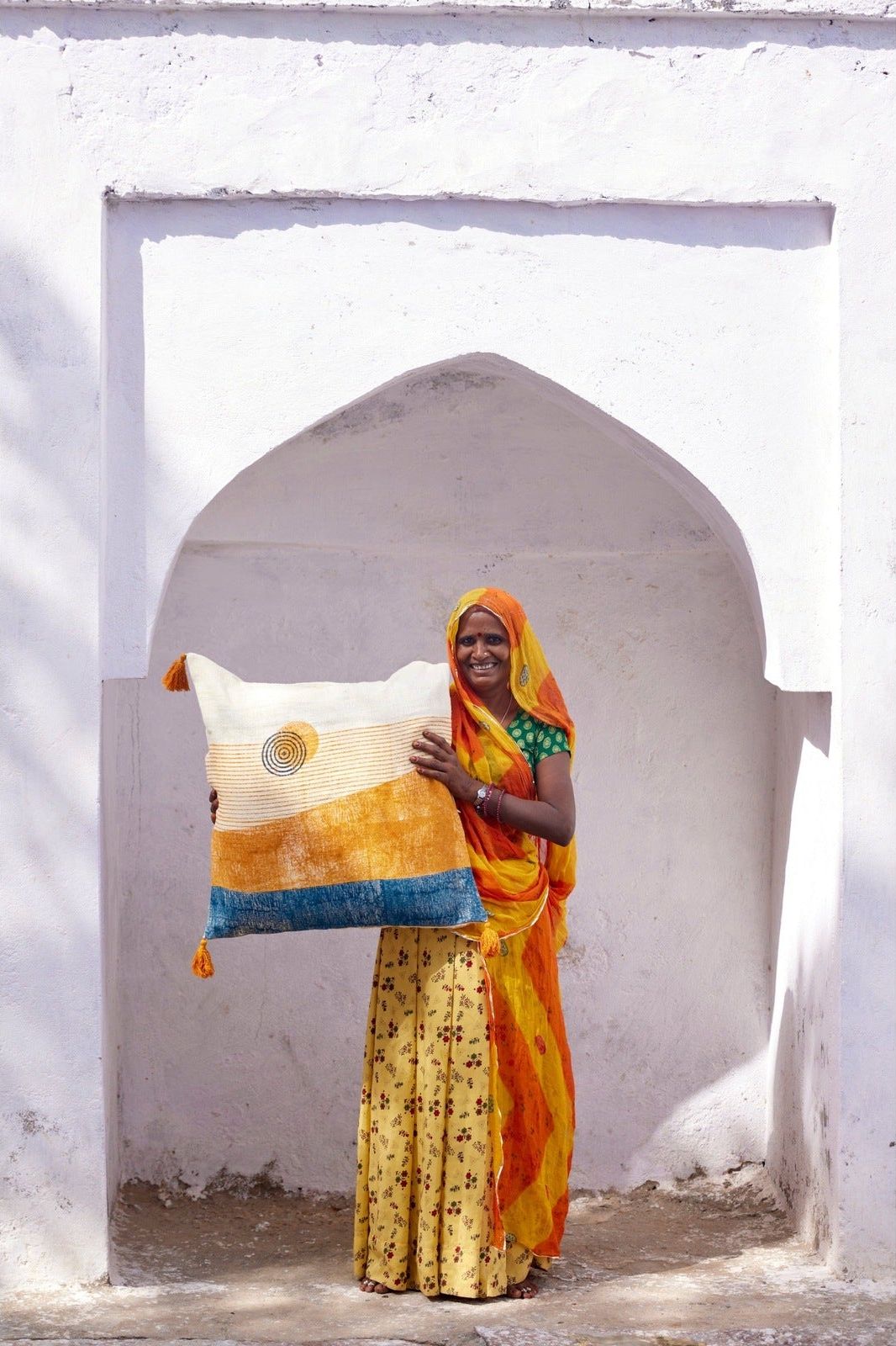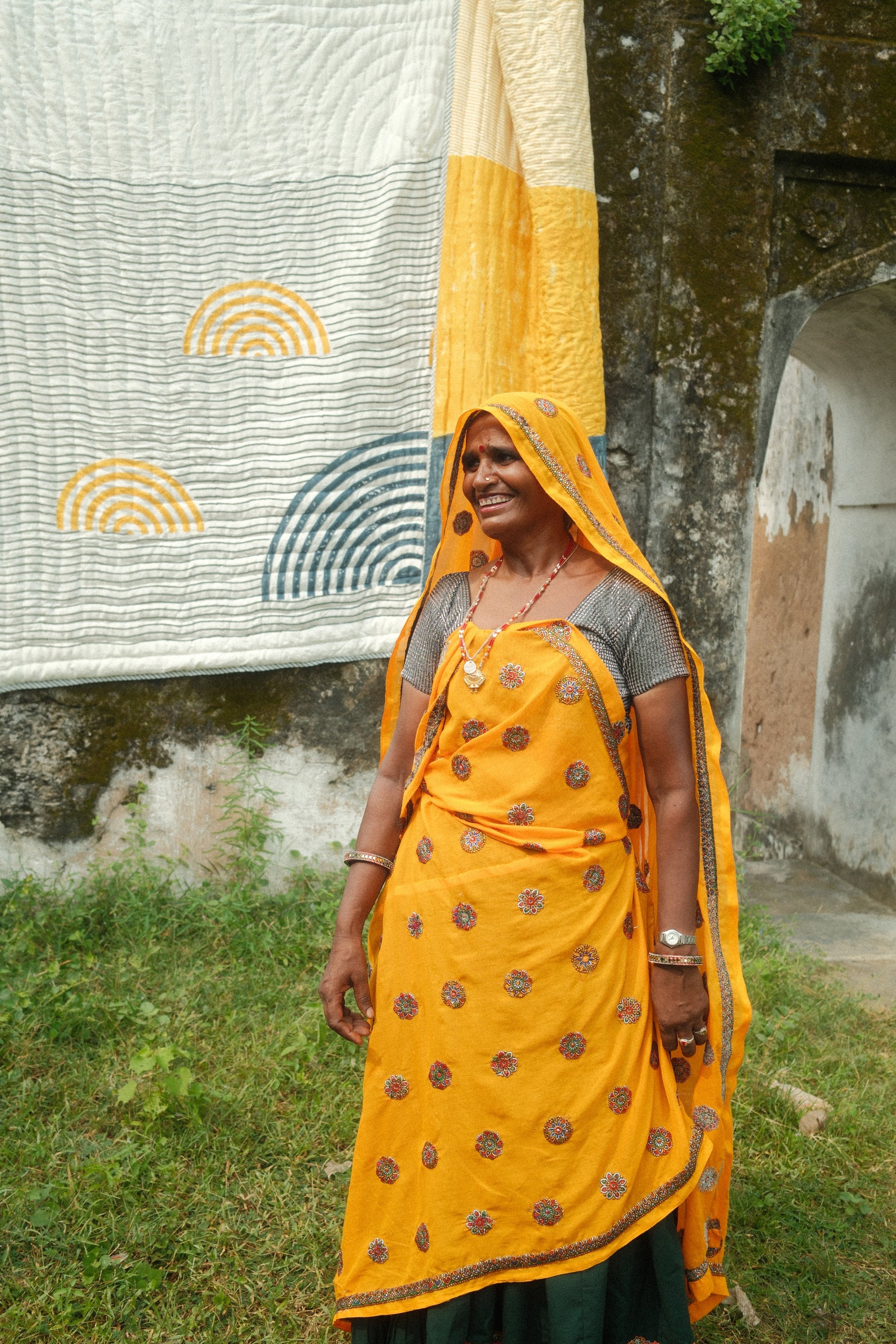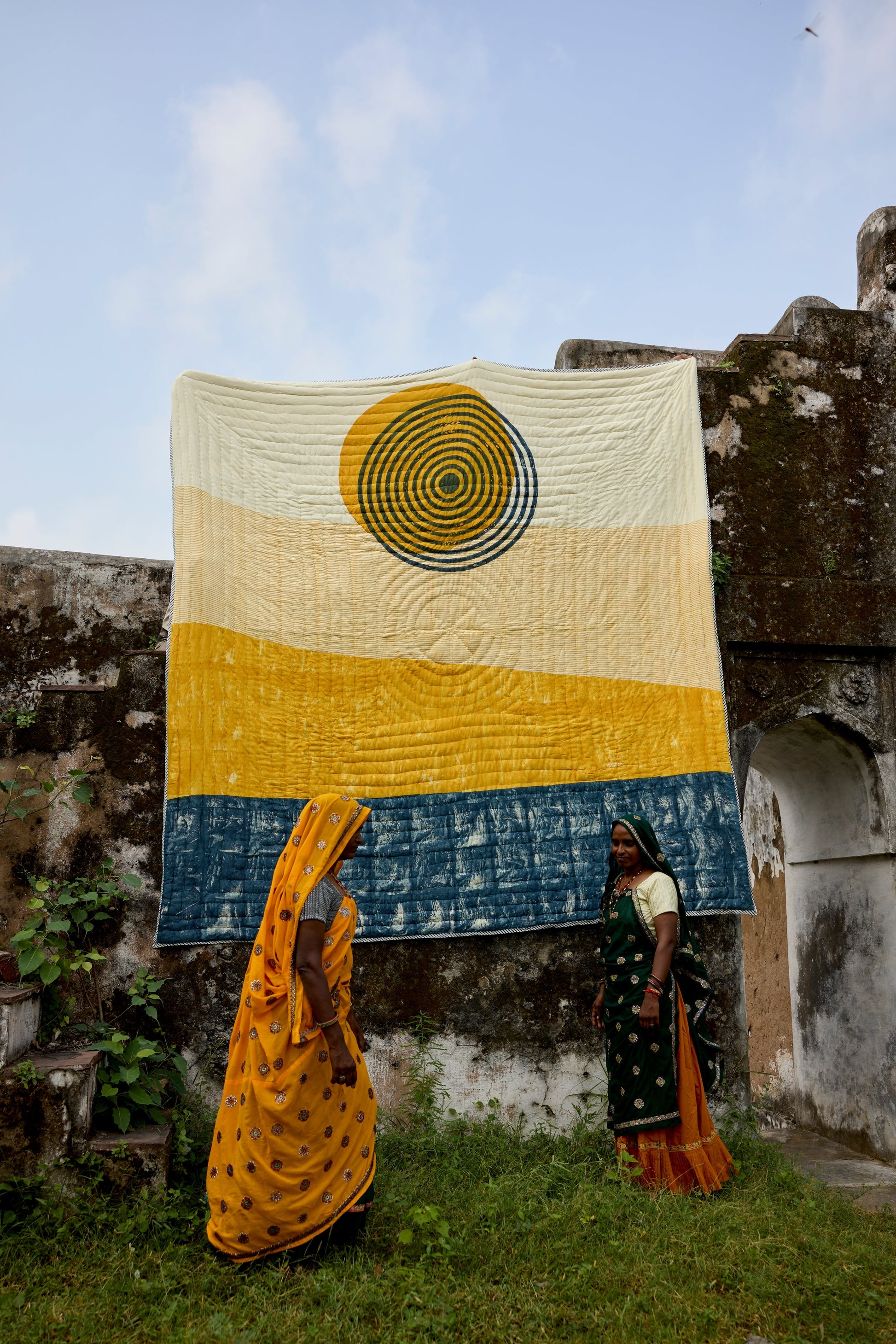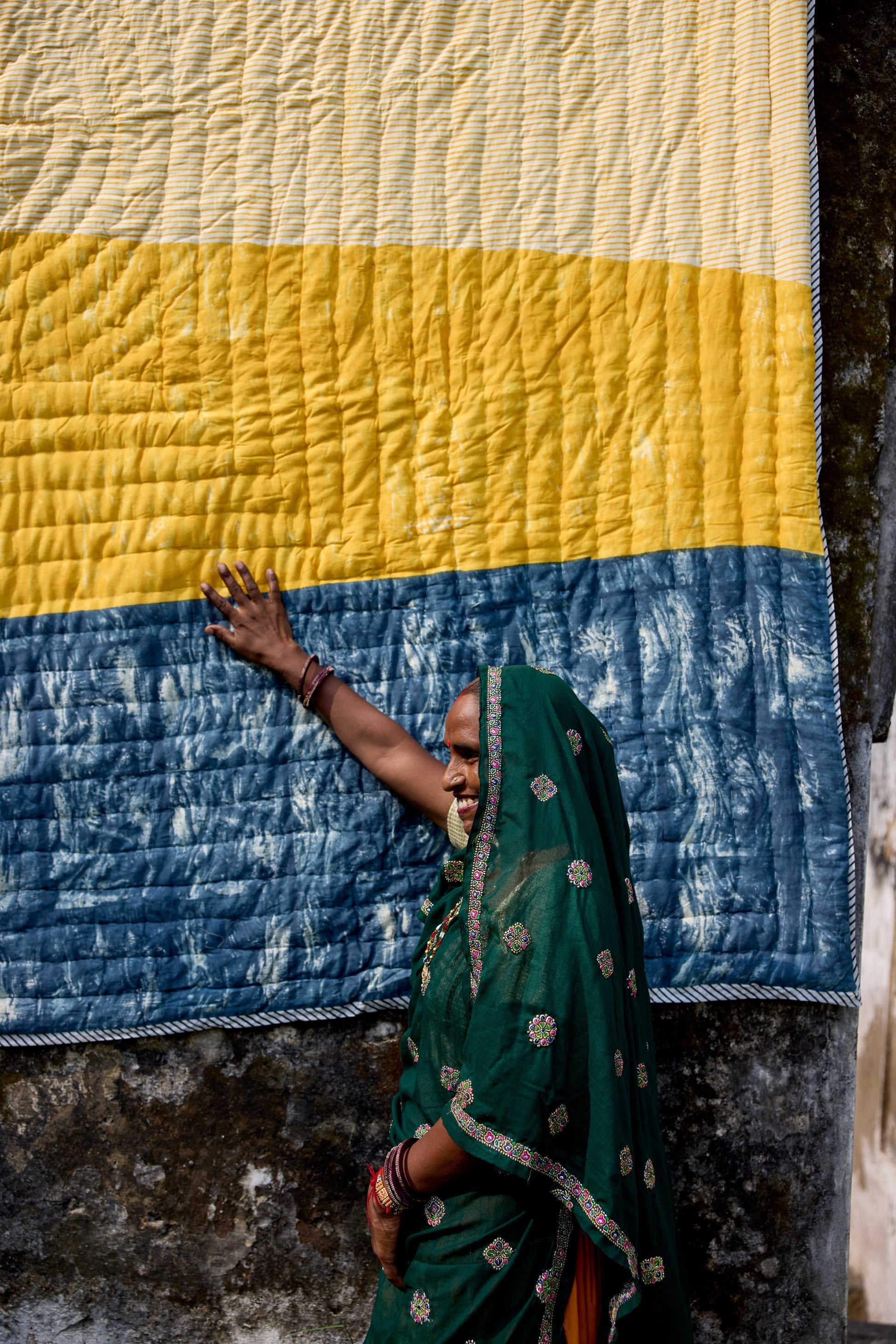 Each quilt is handmade, requiring attention from 4 different artisans, including wood carvers, block printers, quiltmakers, and dye specialists. The design is hand-pressed onto each quilt using hand-carved wooden blocks dipped in dyes. The printed cotton shells are brought to the homes of quiltmakers, who stuff and stitch the quilts by hand, creating the final product. Our quilts are made in small batches. Due to the handcrafted nature of this item, expect slight variations in the appearance of each unique piece. - 100% cotton voile exterior - 100% cotton stuffing - Made in India - Ships from California - Queen size: 96″ x 96″ - King size: 108″ x 108″