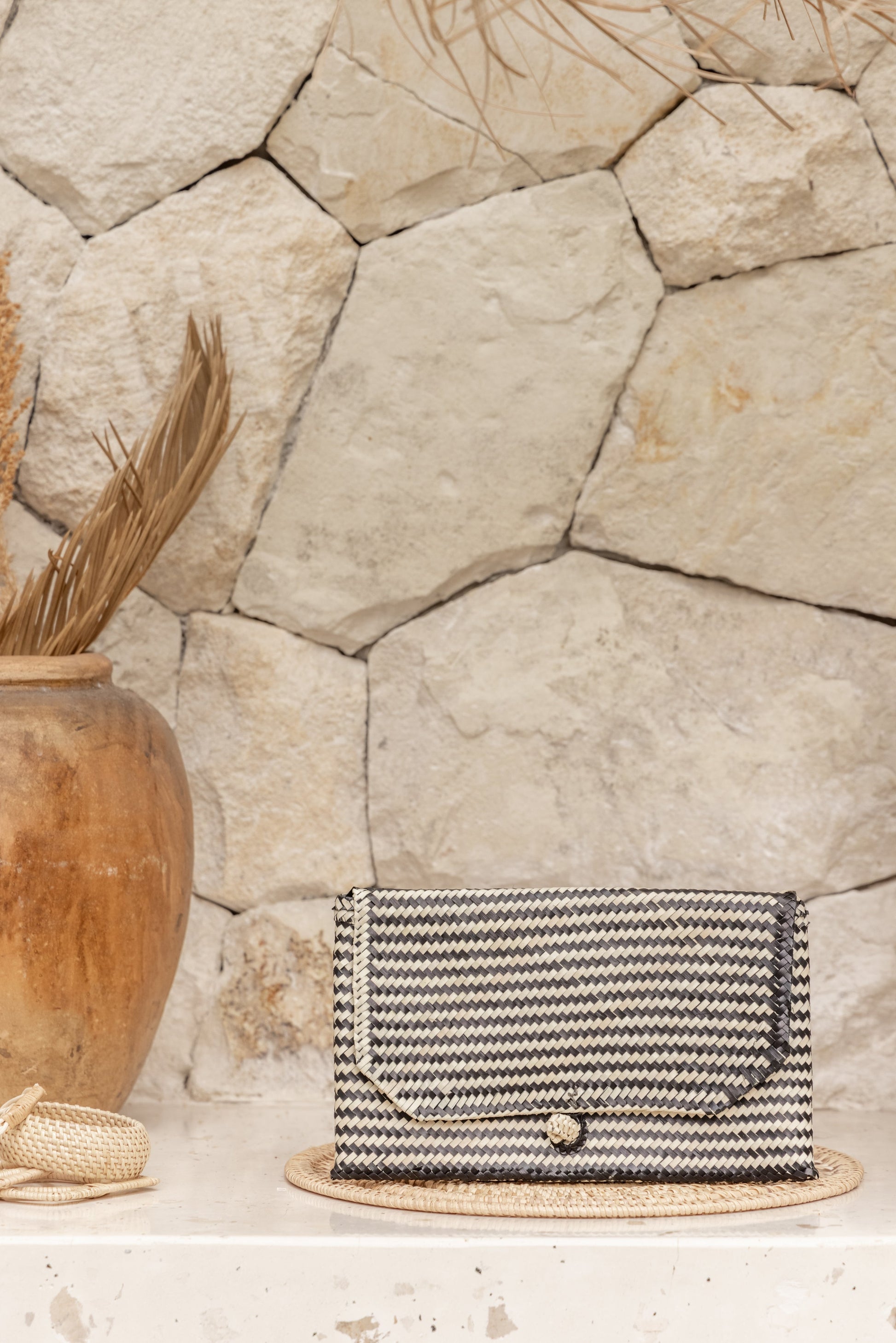 Stripes Rattan Clutch