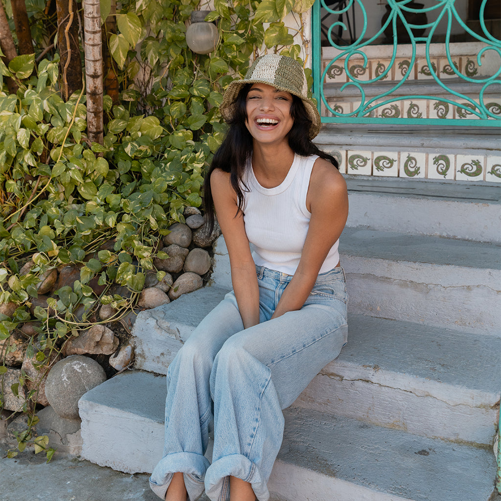 This crocheted, plant-dyed checkered bucket hat is an exclusive design for this Fall. Made by hand from naturally-dyed, cabuya plant fiber. A cute, packable hat made by hand and in small batches by our talented women artisan group. In Stock & Shipping Now. Our hats are handmade and one-of-a-kind. This means that no two are exactly alike and almost all contain irregularities from size to color. Please allow for slight imperfections as this is what adds to the unique character of each hat. Style Notes Plant Dyed & Crocheted Natural Fiber Moveable 3-4" brim Flexible elastic inner band for the best fit 100% crafted by hand Sizing Guide Our bucket hats include a flexible elastic inner band so most hats fit all heads, yet since they are handmade it's better to choose the size range. S 53-55cm M 56-58cm L 59-61cm
