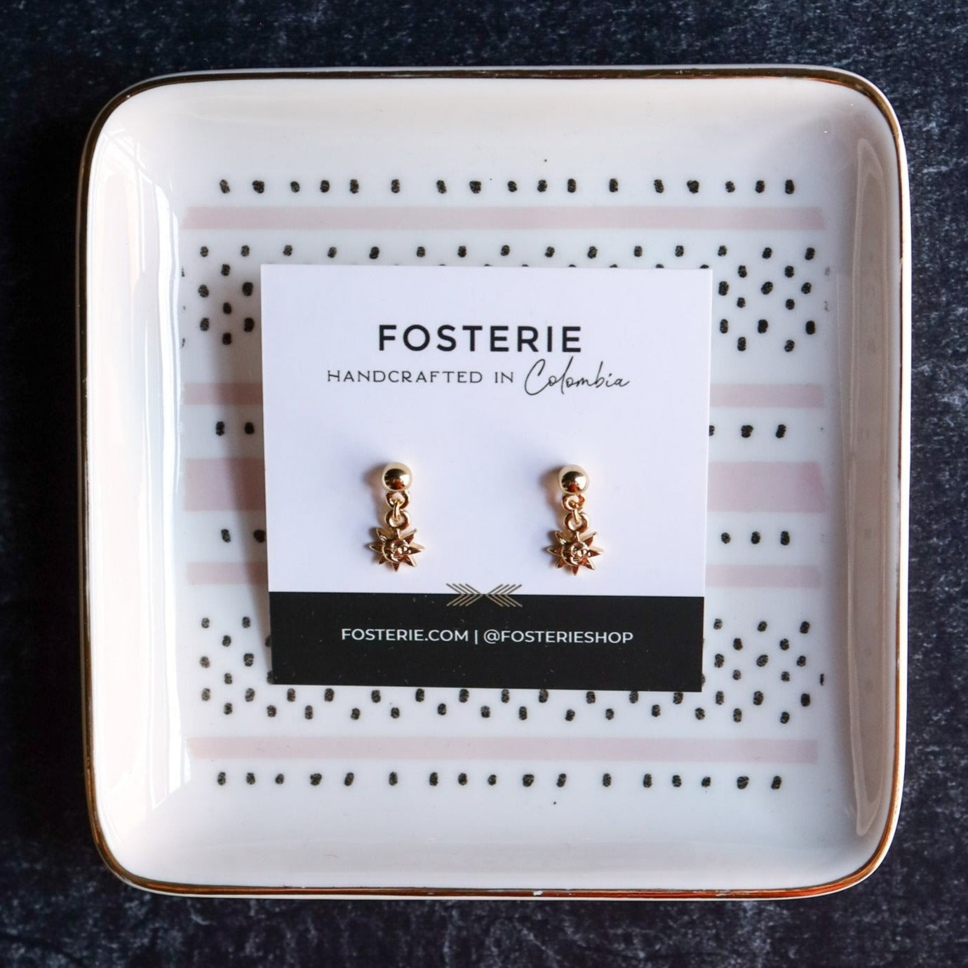 Our SUN STUD EARRINGS are an obvious choice for adding a little sunshine to your day. Super sweet as a single pair, they also make a lovely layered look with multiple piercings. Hypoallergenic and tarnish resistant. Closure: Post Materials: Gold plated brass, zinc/alloy base metal, coated with a tarnish resistant protective lacquer for longevity. This product was ethically hand-crafted by members of a vulnerable population in Medellín, Colombia who were paid a fair wage and provided safe, positive working conditions. Your purchase makes an impact and bridges the gap between fashion and compassion.