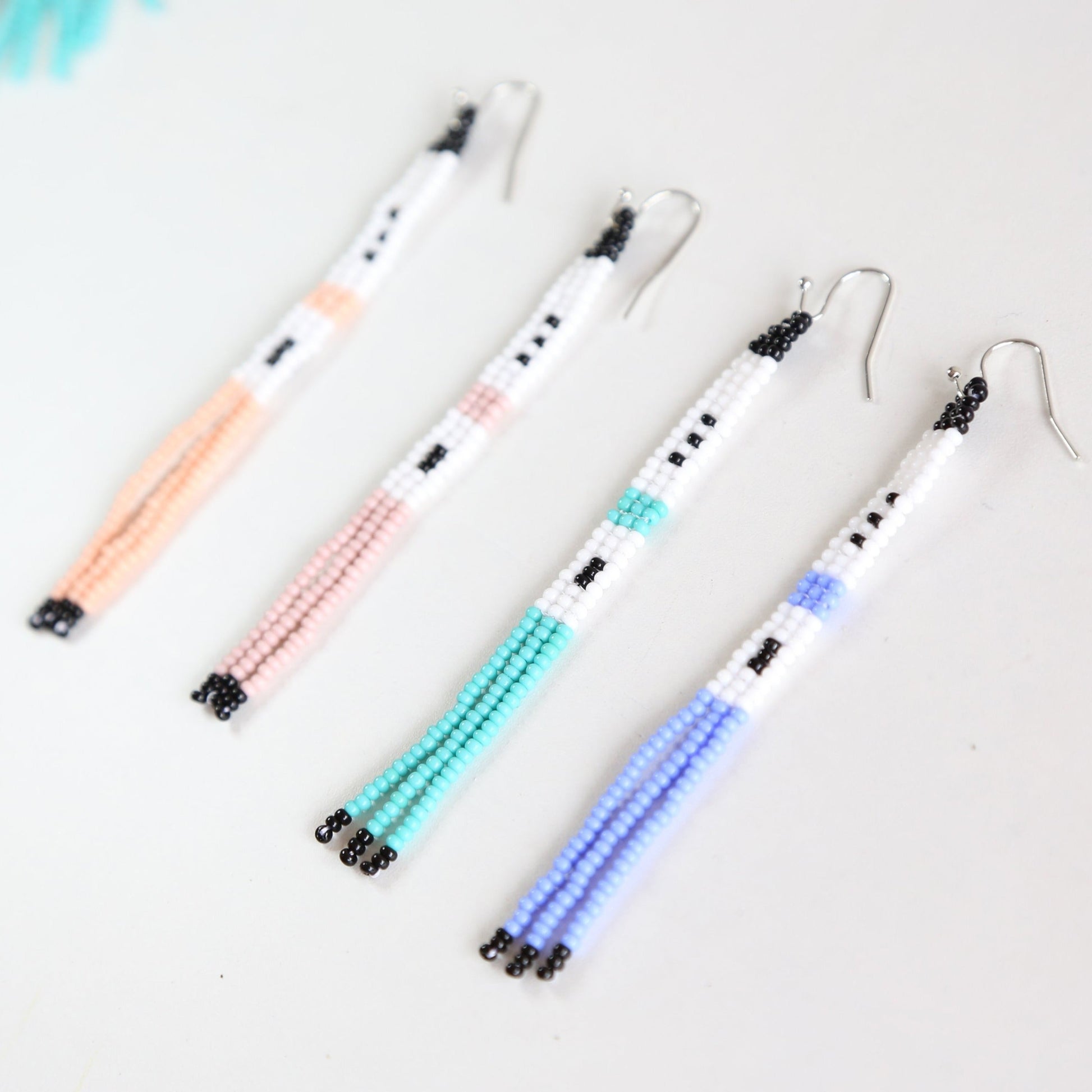Inspired by the colorful Colombian island of San Andres, this skinny style is lightweight and easy breezy for beach trips and beyond. Details: Handcrafted by artisans in Medellin, Colombia Materials: Seed beads / Stainless steel hardware Size: Approximately 4 inches from top of hook, 0.4 inches wide SKU: #E1024 FOSTERIE | Accessories with Intention Founded on the belief that fashion + compassion can make a positive impact on the world, each FOSTERIE exclusive product is proudly and ethically handcrafted in Colombia by our team of indigenous Embera artisans. Our pieces have been infused with love + joy and our hope is that these sentiments remain each time you wear them. Your support provides a means of upwards social mobility for our makers, ensuring fair wages and safe, positive working conditions. Learn more about our mission + makers at Fosterie.com.