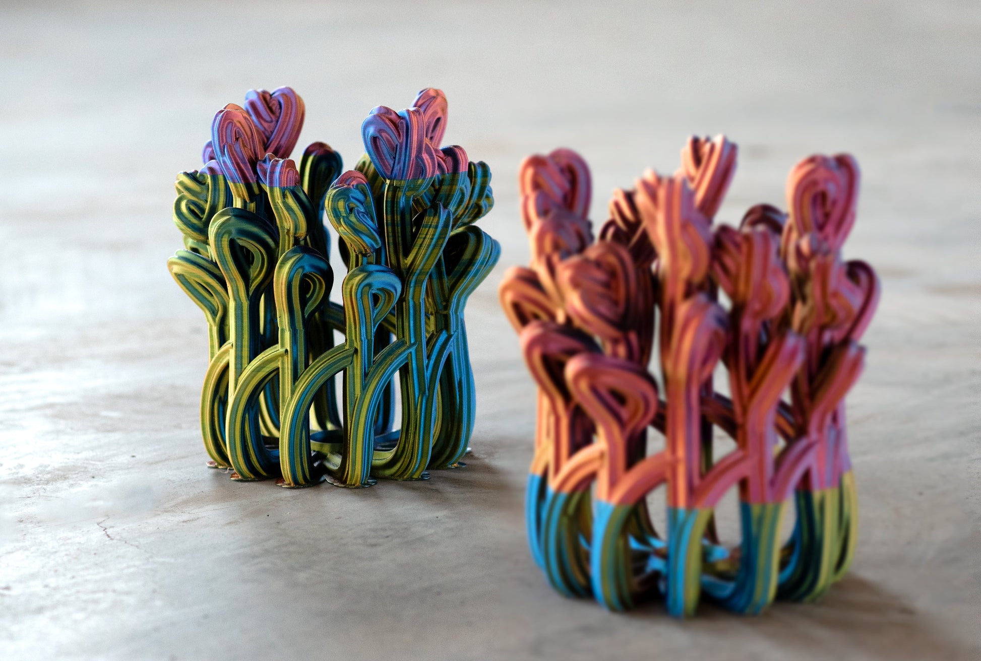 SuperBloom Collection captures the moment when nature bursts into life after a long pause. Each piece in the collection is created layer by layer, forming intricate loops that mimic the organic rhythm of blooming petals. Material: Glass + PLA Dimensions: 22 x 22 x 25 cm / 8.7 × 8.7 × 9.8 inches