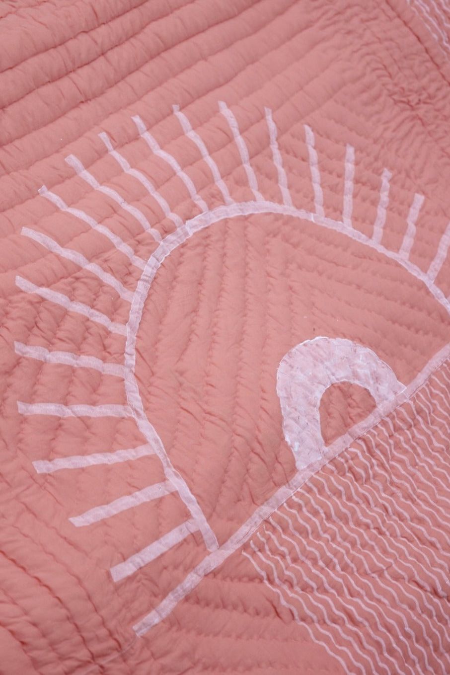 Each quilt is handmade, requiring attention from 4 different artisans, including wood carvers, block printers, quiltmakers, and dye specialists. The design is hand-pressed onto each quilt using hand-carved wooden blocks dipped in dyes. The printed cotton shells are brought to the homes of quiltmakers, who stuff and stitch the quilts by hand, creating the final product. Our quilts are made in small batches. Due to the handcrafted nature of this item, expect slight variations in the appearance of each unique piece. - 100% cotton voile exterior - 100% cotton stuffing - Made in India - Ships from California - Queen size: 96″ x 96″ - King size: 108″ x 108″