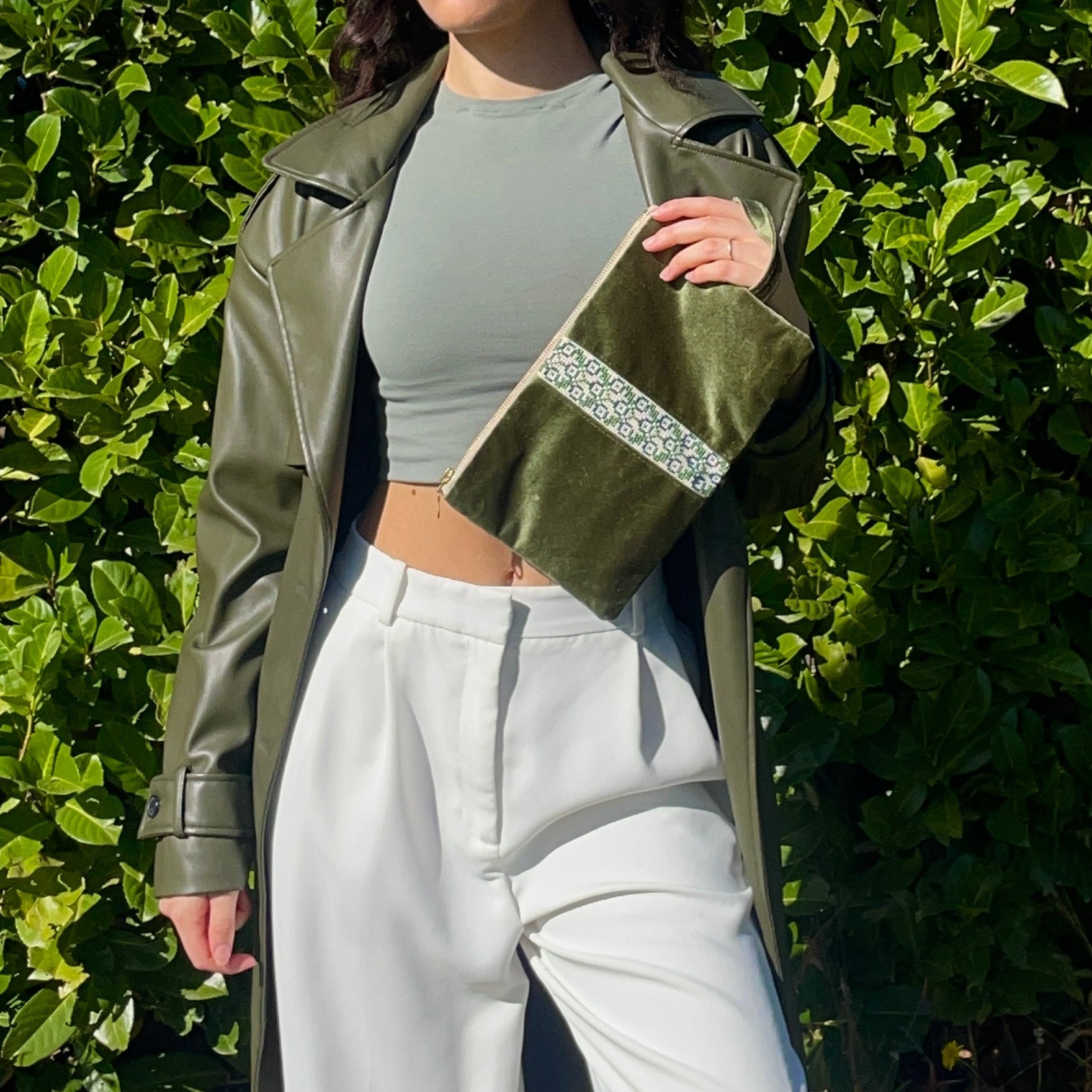 The Velvet Tatreez Clutch is a great option for those who are looking for a mixture of style and convenience. Easy to grab and go, this wristlet is a fun accent piece that will spruce up any outfit and keep your essentials nearby.