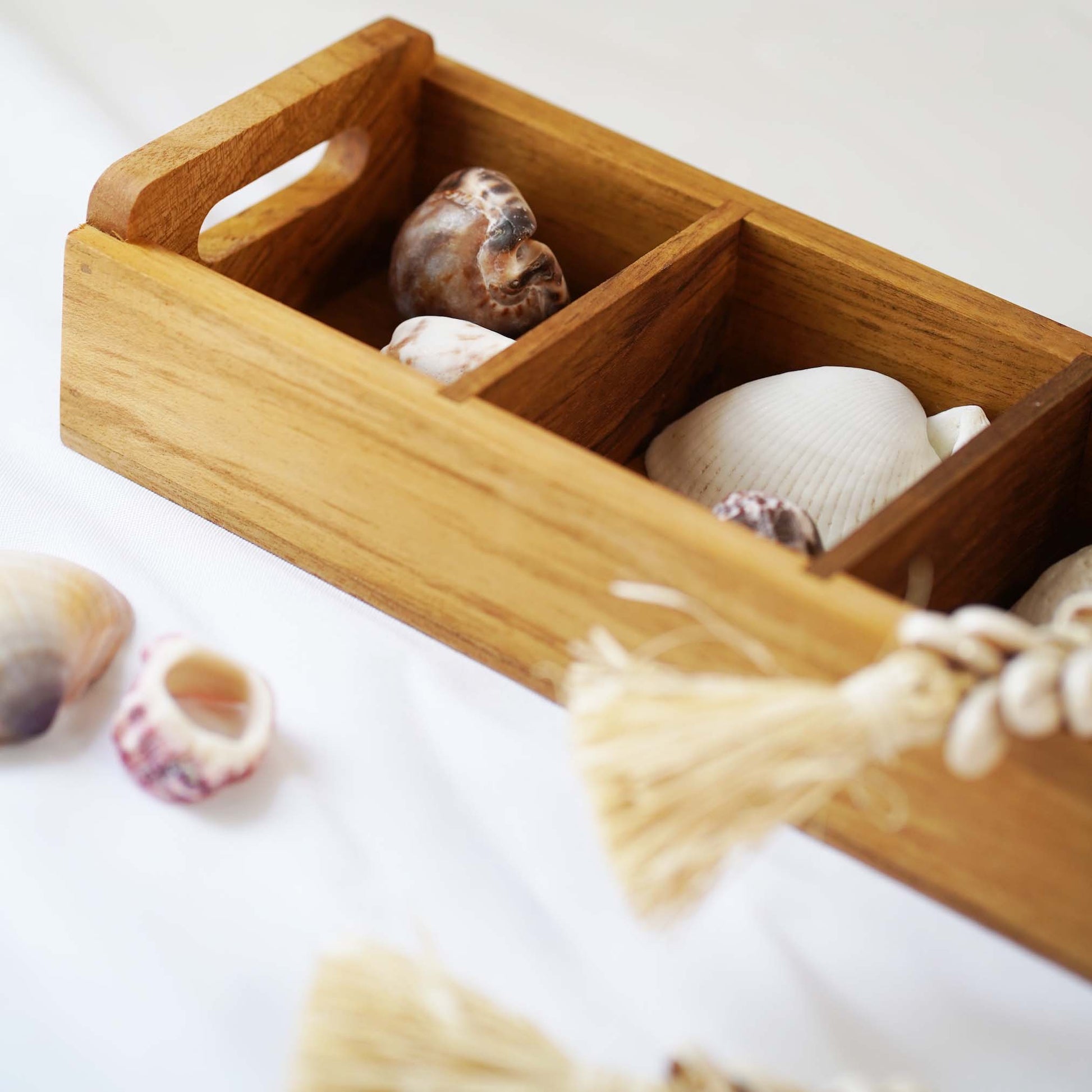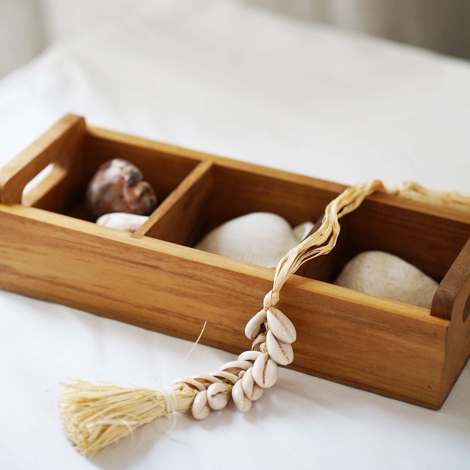Handmade teak wood rectangle sugar tray made by artisans in Indonesia. Teak wood has natural oil and rubber that makes it perfect and long lasting for kitchenware. This tray would be perfect for storing tea, coffee, sugar.