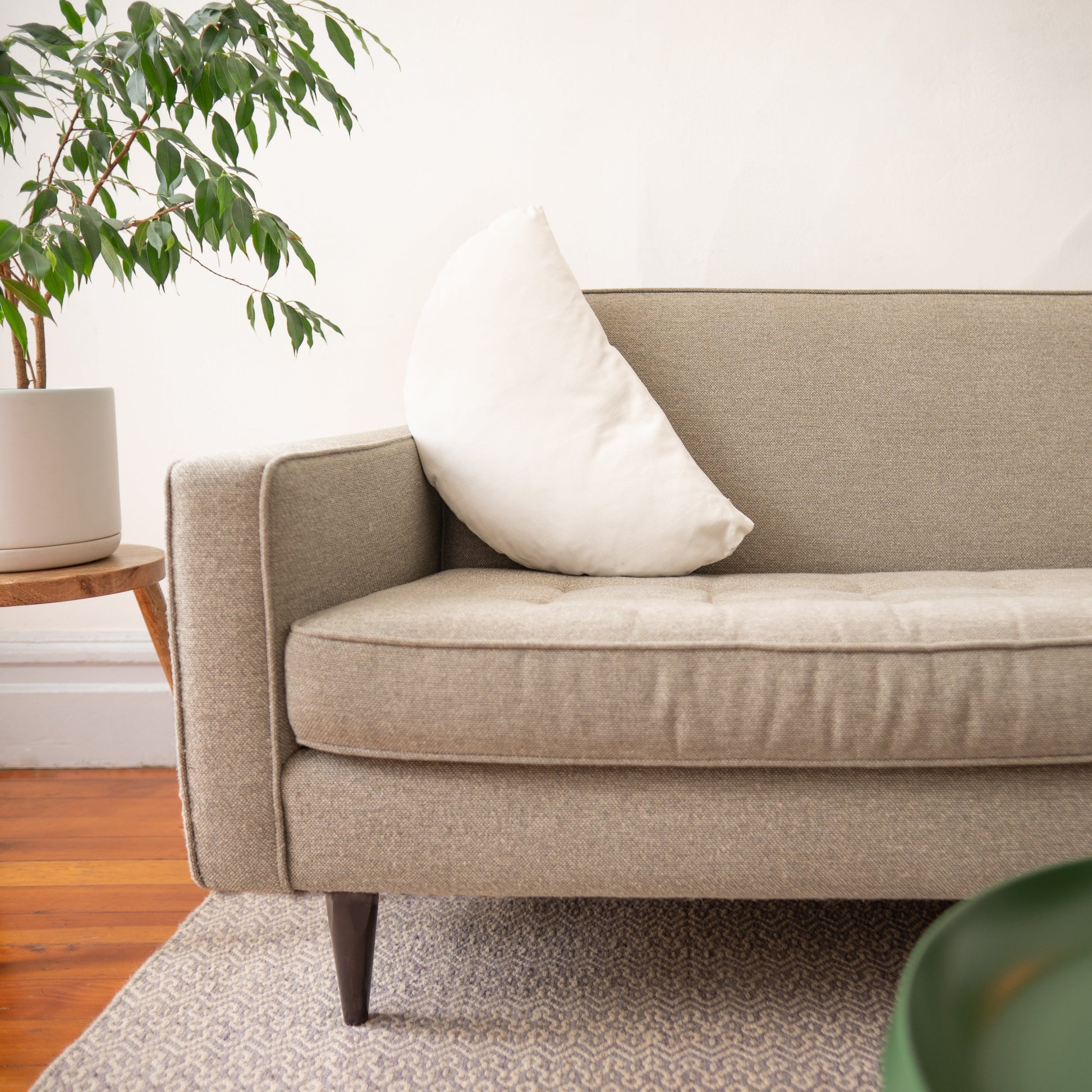 Our friendly Large Circle cut in half. The Half Circle can be propped up at different angles to create flexible compositions and add movement to your lounge area. This is a 22" wide and 12" high decorative pillowcase, tightly fitted with a custom pillow insert. Handmade in very small batches, in Istanbul