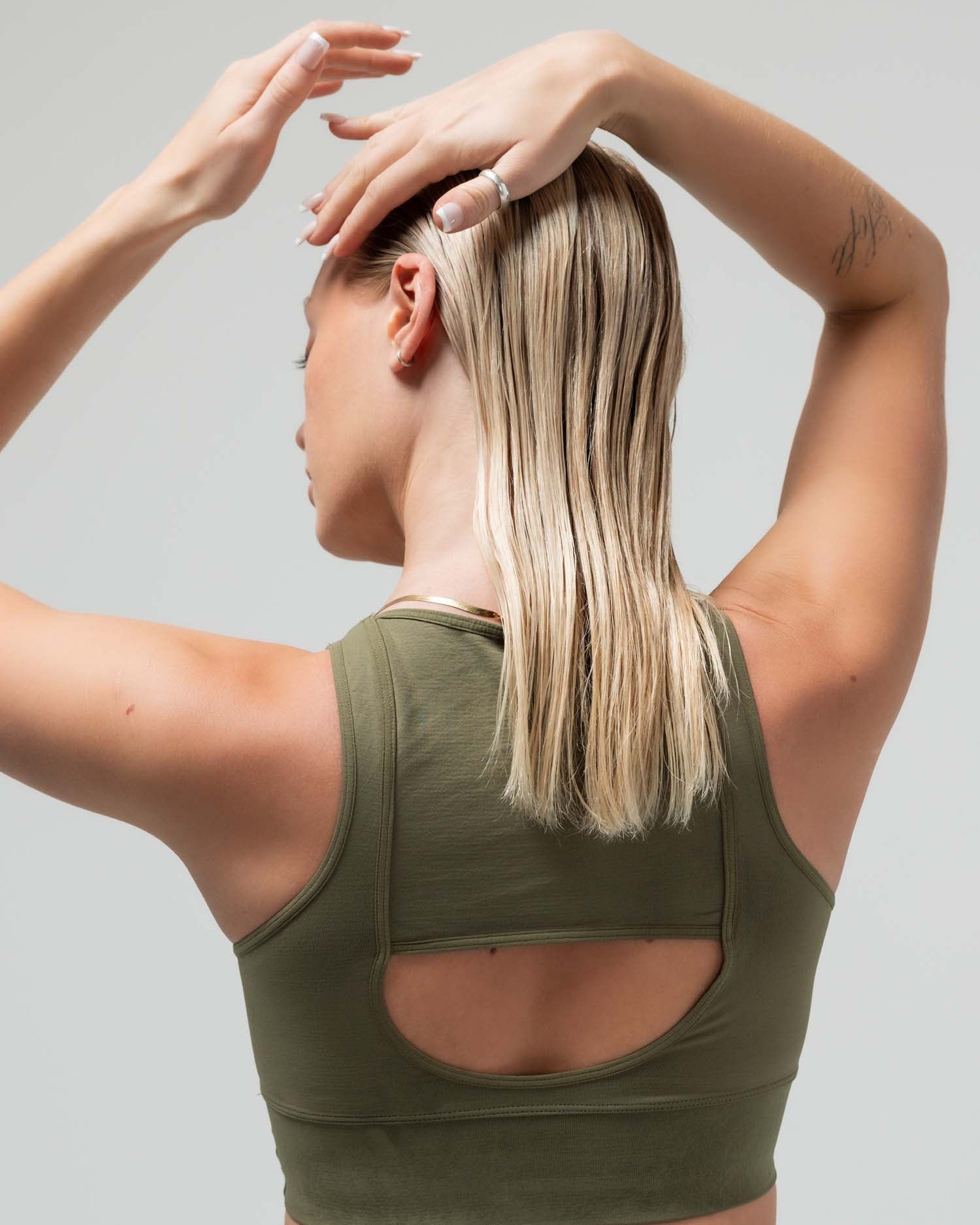 Experience the Difference: This high neck sports bra is versatile. The halter-style neckline is not just for looks; it's for some serious support. Medium Compression: Our bra offers medium compression that molds to your form, providing the right balance of support and freedom. Attention to Every Detail: Proudly designed and made in the heart of Los Angeles. Size & Fit: Our model is wearing a size small. This item fits true to size but due to the medium compression design, if you're between sizes, we recommend sizing up. Contents: 85% Nylon, 15% Elastane Reformer: Define Your Movement