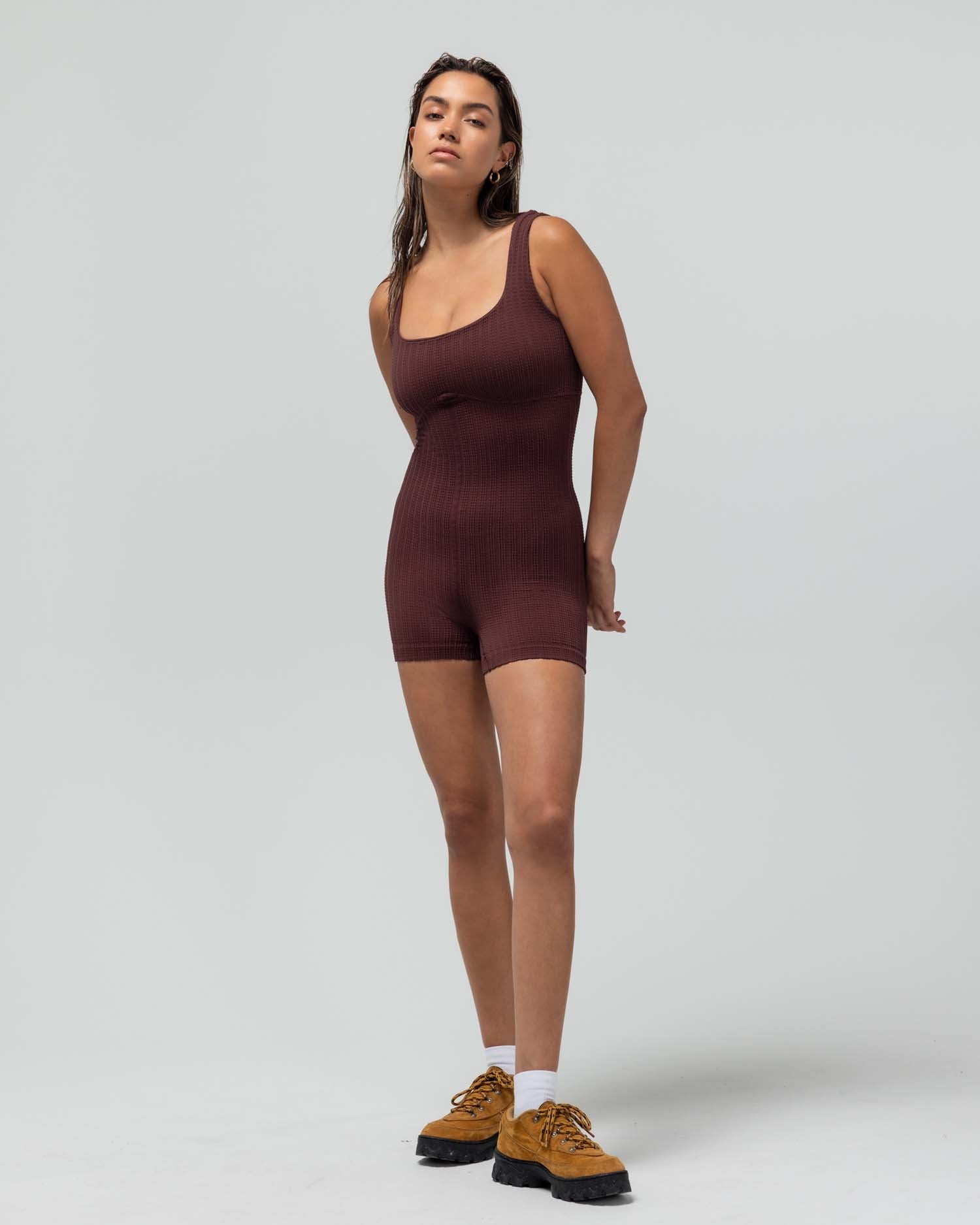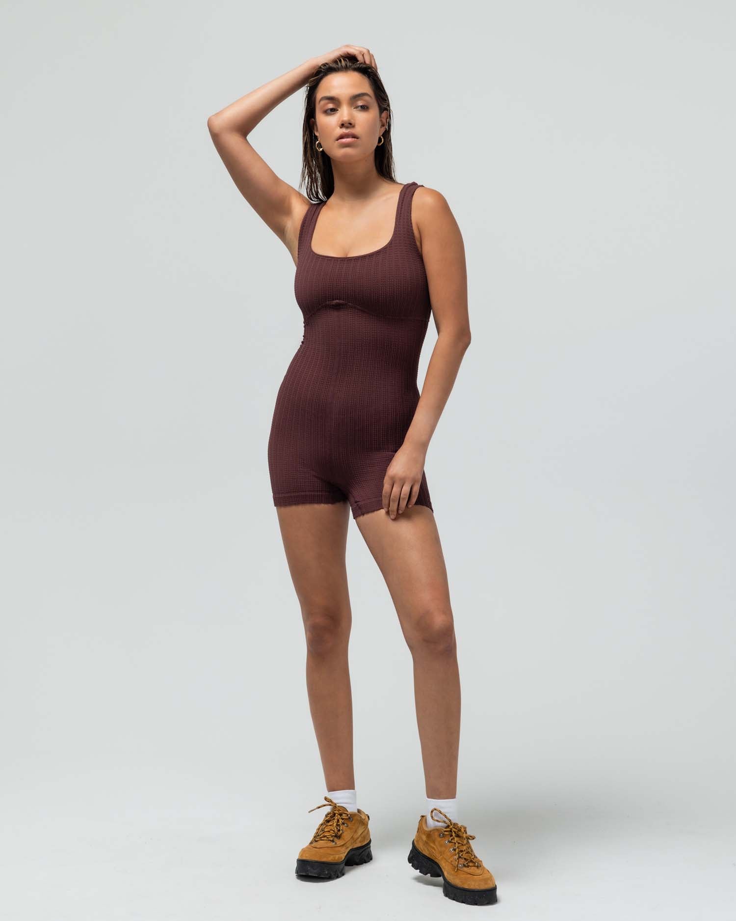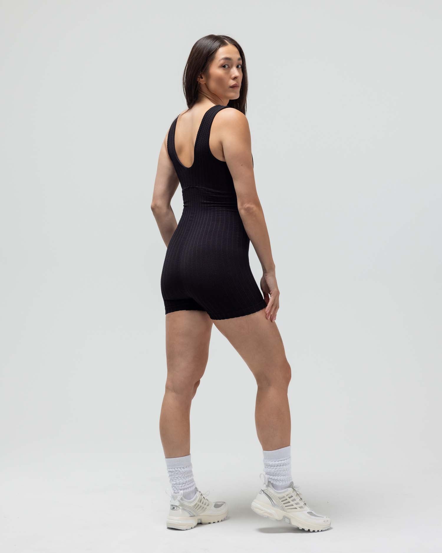Experience the Difference: This workout romper is a textured dream. It's the all-day, everyday piece you didn't know you needed. Medium Compression: Our Runsie offers medium compression that molds to your form, providing the right balance of support and freedom. Attention to Every Detail: Proudly designed and made in the heart of Los Angeles. Size & Fit: Our model is wearing a size small. This item fits true to size but due to the medium compression design, if you're between sizes, we recommend sizing up. Contents: 85% Nylon, 15% Elastane Reformer: Define Your Movement