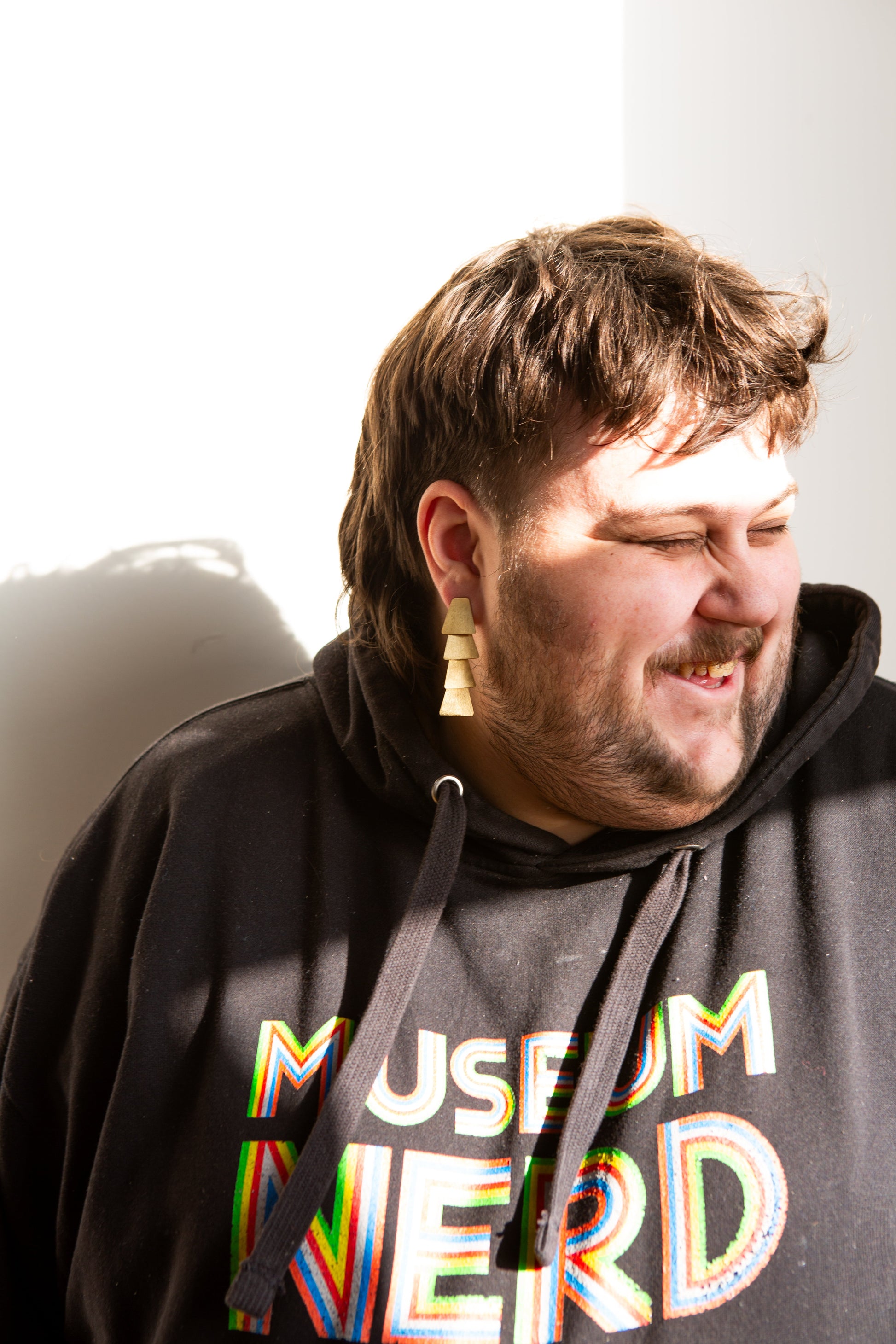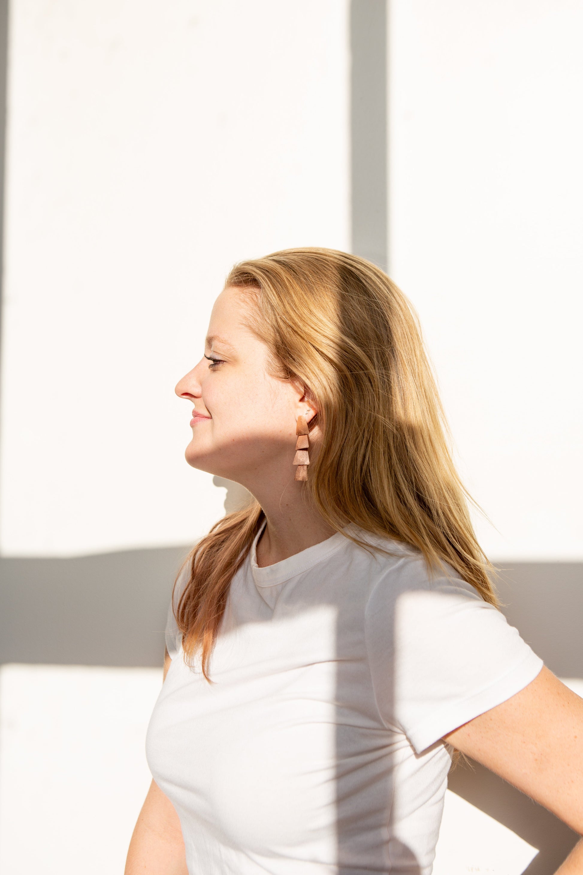 Recycled brass (and copper plating). Measures 2.5" long. Stud post. Nickel free. Lightweight and comfortable: designed for all-day wear.
