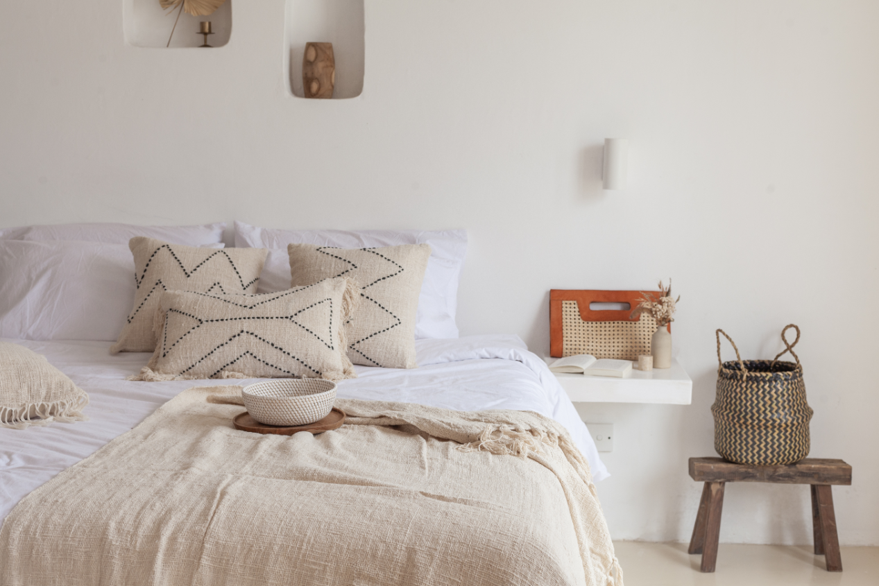 This three piece set rests inside each other for easy storage and when in use creates cohesiveness throughout your space. Made from natural and recycled materials.