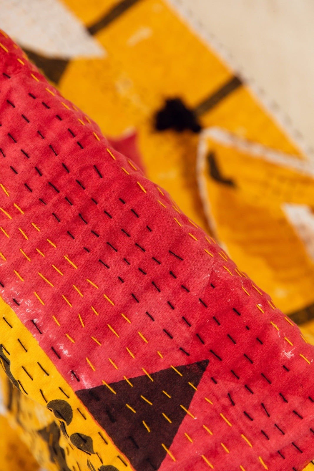 Each throw is handmade, requiring attention from 4 different types of artisans, including wood carvers, block printers, Kantha quiltmakers, and dye specialists. The design is hand-pressed onto pure cotton using hand-carved wooden blocks dipped in dyes. The printed cotton is brought to the homes of Kantha quiltmakers, who hand-stitch the cotton sheet onto a cotton base to create the final throw. Our cotton throws are made in small batches. Due to the handcrafted nature of this item, expect slight variations in the appearance of each unique piece. - 100% Cotton - Size: 54" x 84" - Made in India - Ships from California