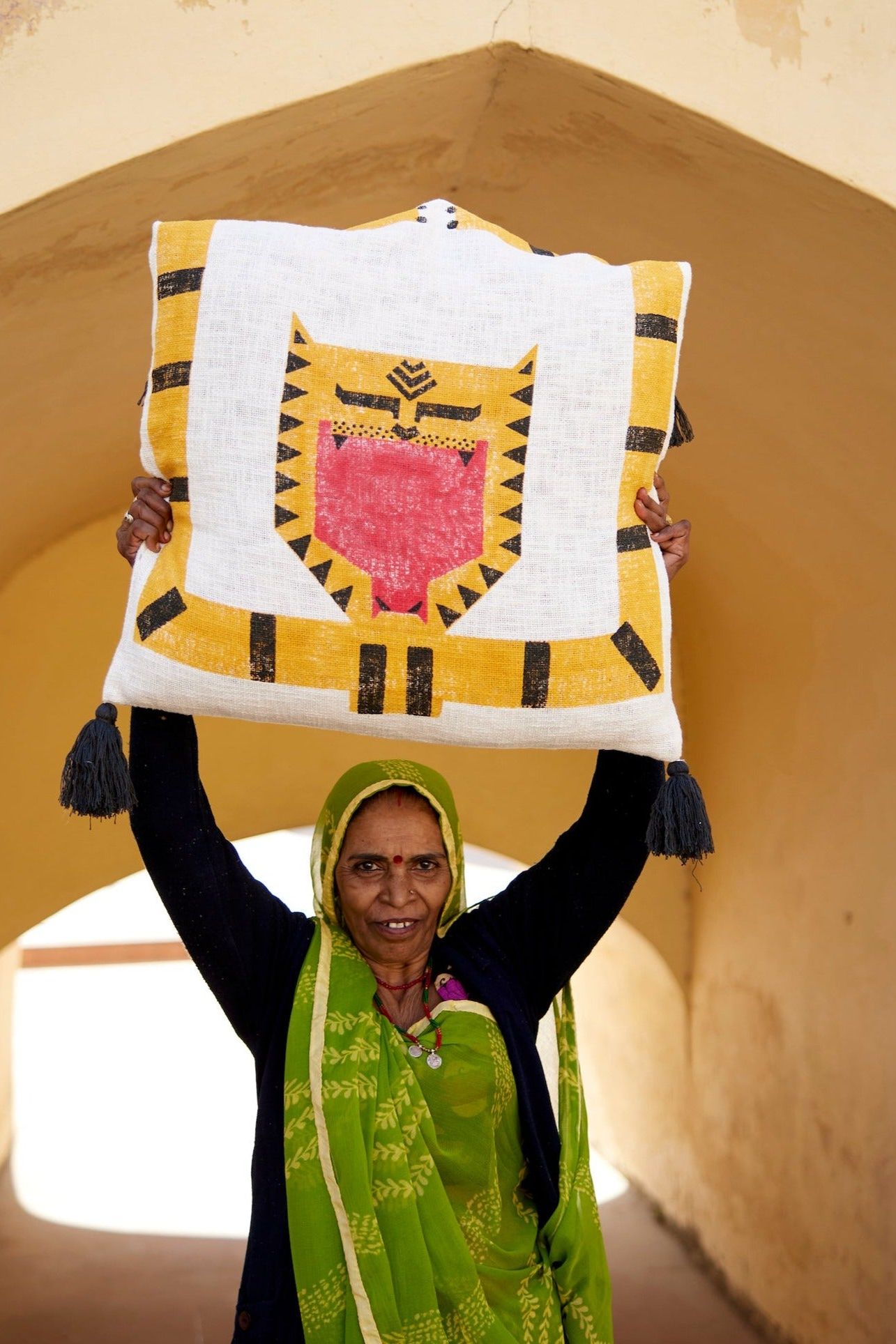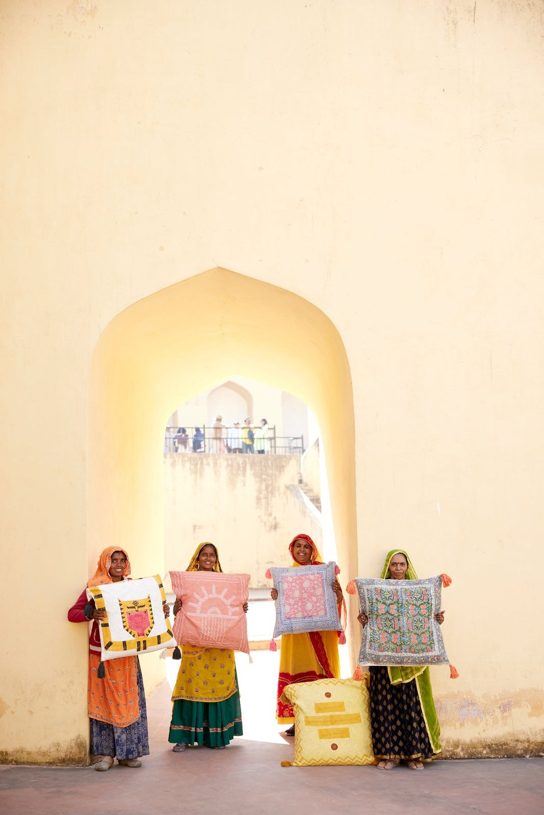 Each pillow sham is handmade, requiring attention from 4 artisans, including wood-block carvers, hand-printers, sewists, and dye specialists. The design is hand-pressed onto each sham using hand-carved wooden blocks dipped in dyes. Our shams are made in small batches. Due to the handcrafted nature of this item, expect slight variations in the appearance of each unique piece. - Sold individually - 100% Cotton - Size: 26″ x 26” - Tie closure - Made in India - Ships from California