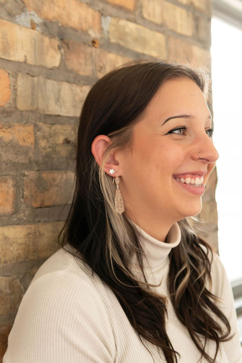 Calling all starry-eyed dreamers and moon worshipers! Introducing Tiny Sky Studs, the perfect everyday accessory that will keep you connected to the celestial wonders above. Crafted with love and simplicity in mind, these sterling silver studs are a minimalist's dream come true. Pair them with other pieces from our stunning silver collection for a look that will make your friends green with envy. Rest assured, these earrings are made from recycled metal, so you can rock them guilt-free! And don't forget to discover the inspiring stories of the talented women behind our India Collection. Join the sky-gazing trend and never, ever feel alone again. Earrings measure . 25". Made from silver-plated recycled metal. Nickel-free.