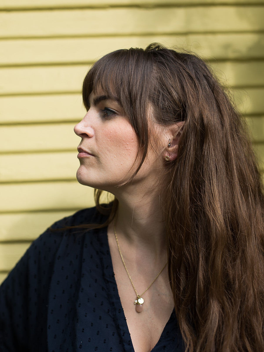 Made fair trade by women in India. Measures 6" with a 3" extender chain. Made from pink chalcedony, freshwater pearl, and brass-plated or silver-plated recycled metal. Nickel-free.
