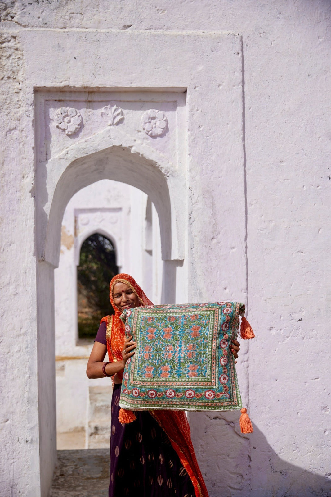 Each duvet cover is handmade, requiring attention from multiple artisans, including wood carvers, block printers, and dye specialists. The design is hand-pressed onto each duvet using hand-carved wooden blocks dipped in dyes. Our duvet covers are made in small batches. Due to the handcrafted nature of this item, expect slight variations in the appearance of each unique piece. - 100% Cotton - Button Closure - Reversible Design - Handmade in India - Ships from California - Queen Size: 92″ x 96″ | King Size: 96″ x 104″ | Shams Size: 26" x 26" - Machine wash on a gentle cycle and tumble dry or dry clean