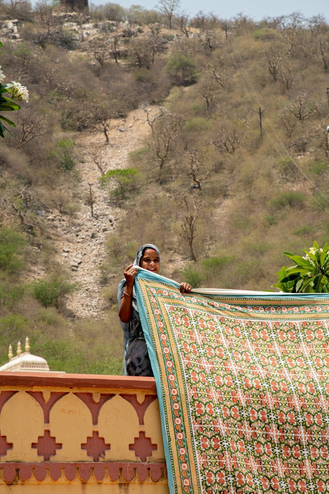 Each duvet cover is handmade, requiring attention from multiple artisans, including wood carvers, block printers, and dye specialists. The design is hand-pressed onto each duvet using hand-carved wooden blocks dipped in dyes. Our duvet covers are made in small batches. Due to the handcrafted nature of this item, expect slight variations in the appearance of each unique piece. - 100% Cotton - Button Closure - Reversible Design - Handmade in India - Ships from California - Queen Size: 92″ x 96″ | King Size: 96″ x 104″ | Shams Size: 26" x 26" - Machine wash on a gentle cycle and tumble dry or dry clean