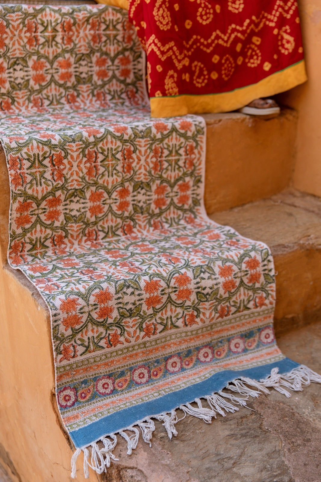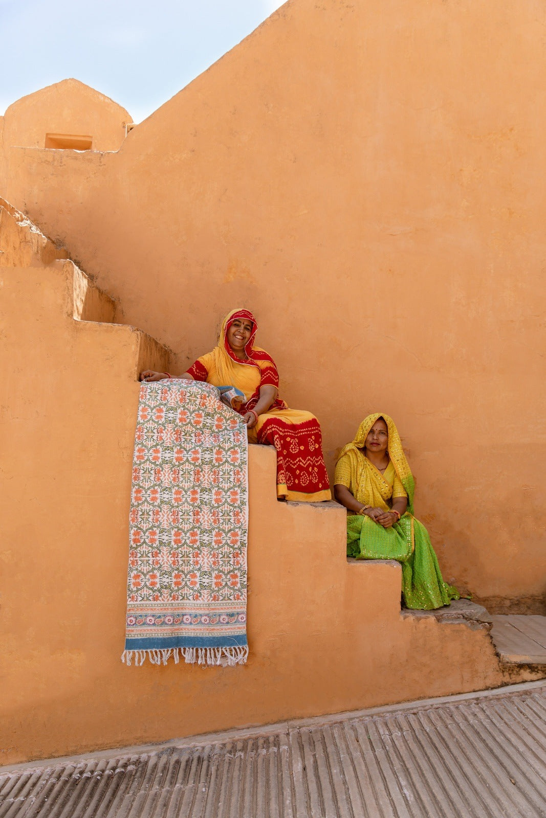 Each rug is handmade, requiring attention from 4 artisans, including wood carvers, block printers, weavers, and dye specialists. The design is hand-pressed onto each rug using hand-carved wooden blocks dipped in dyes. All rugs are made in small batches. Due to the handcrafted nature of this item, expect slight variations in the appearance of each unique piece. - 100% Cotton - Made in India - Ships from California