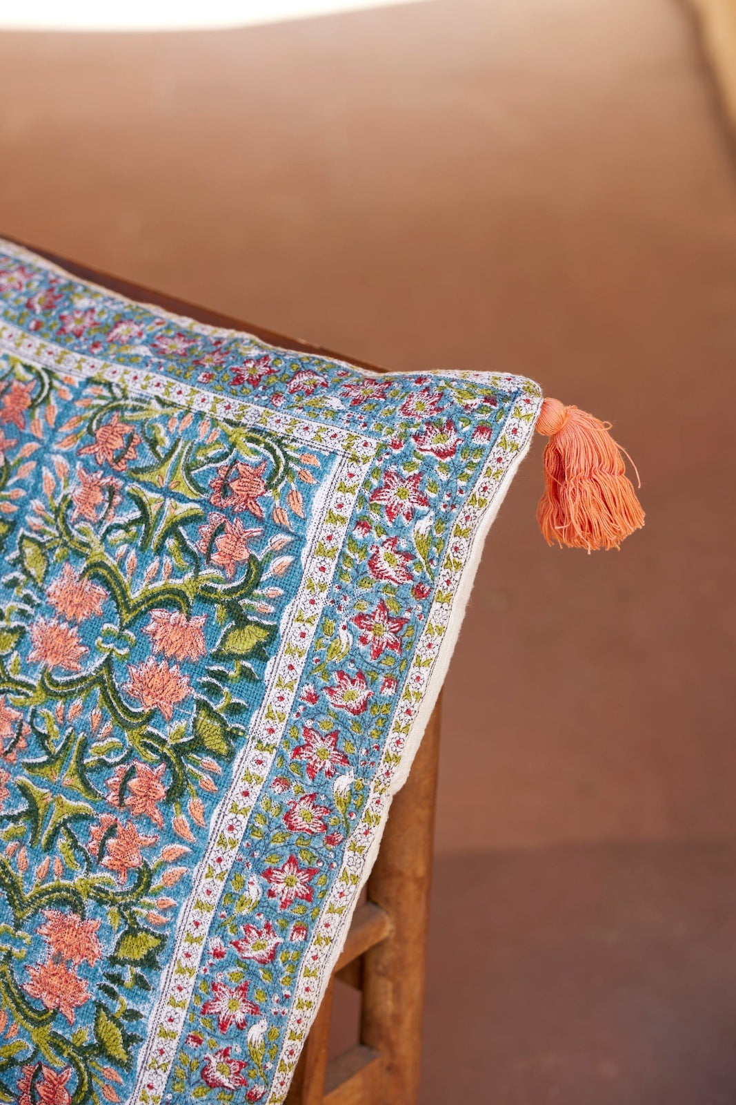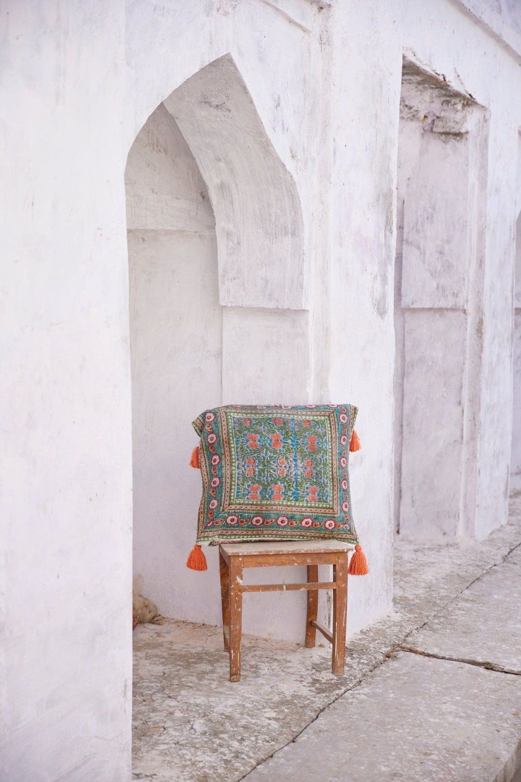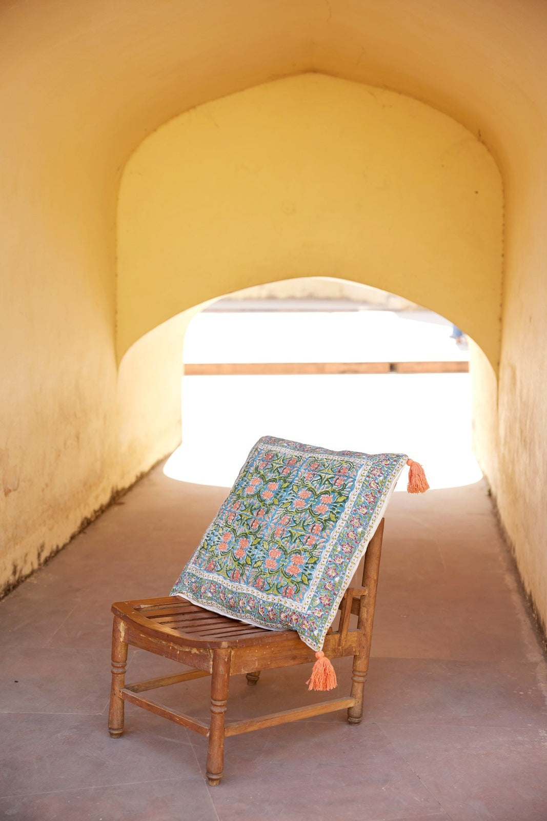 Each pillow sham is handmade, requiring attention from 4 artisans, including wood-block carvers, hand-printers, sewists, and dye specialists. The design is hand-pressed onto each sham using hand-carved wooden blocks dipped in dyes. Our shams are made in small batches. Due to the handcrafted nature of this item, expect slight variations in the appearance of each unique piece. - Sold individually - 100% Cotton - Size: 26″ x 26” - Tie closure - Made in India - Ships from California