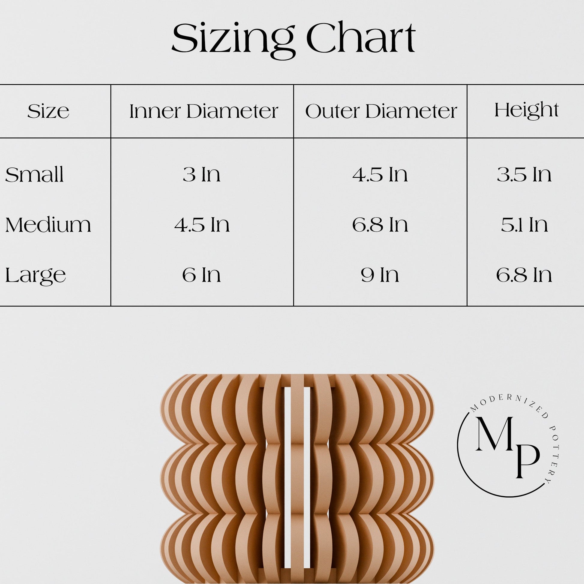 • Medium: inner diameter 4.5 in, outer diameter 6.8 in, height 5.1 in