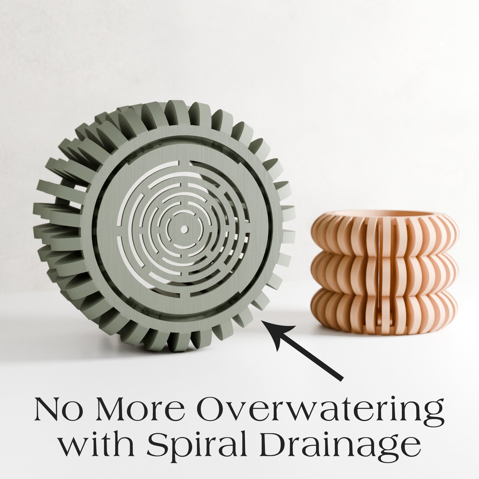 Made in Dallas, Texas. Designed for plant lovers and modern homes, this sculptural triple-bubble silhouette pairs sleek lines with thoughtful function. A fitted drip tray protects your surfaces, while the spiral drainage channel supports healthy roots and helps prevent overwatering. Offered in a range of colors, it blends seamlessly into modern spaces and mixes beautifully in modular groupings.