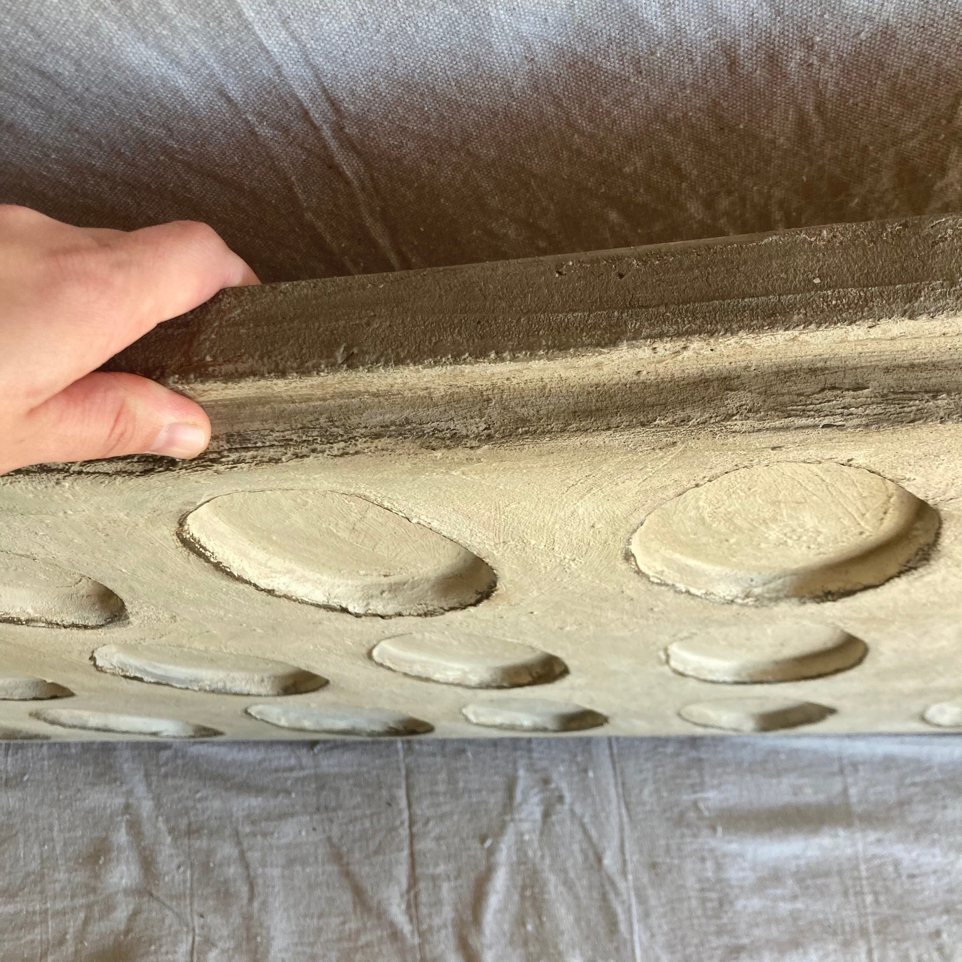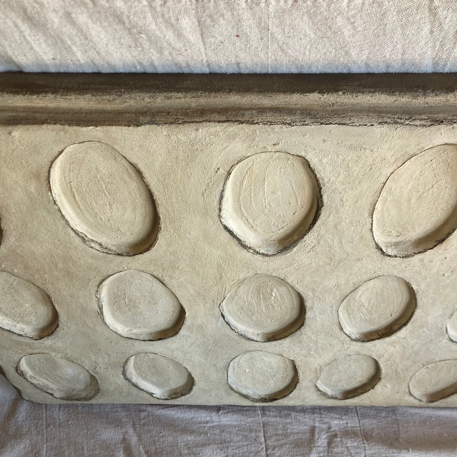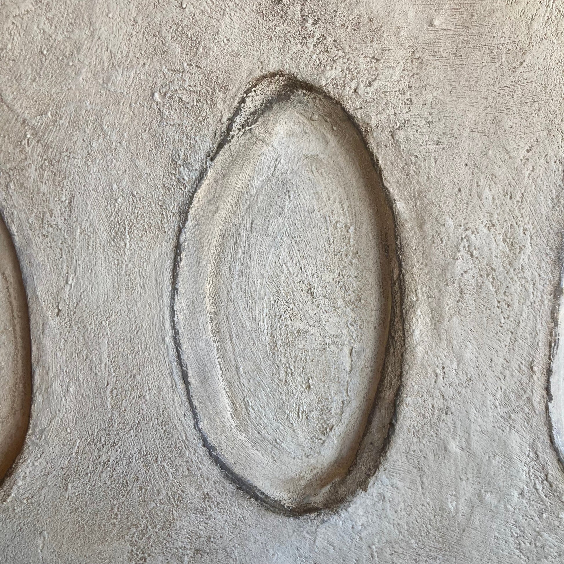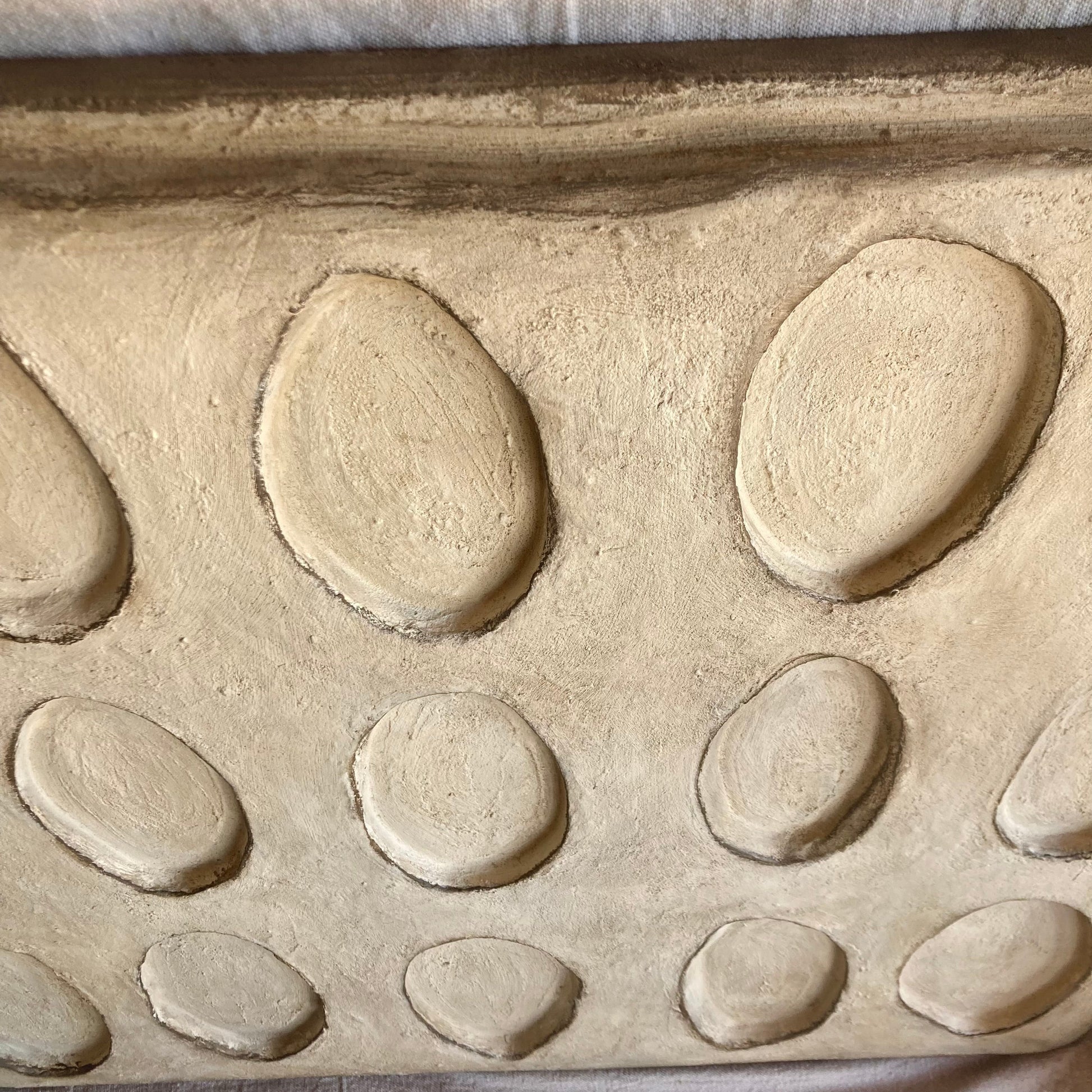 The color palette for this piece is a creamy beige with a tan, greige and brown patina.