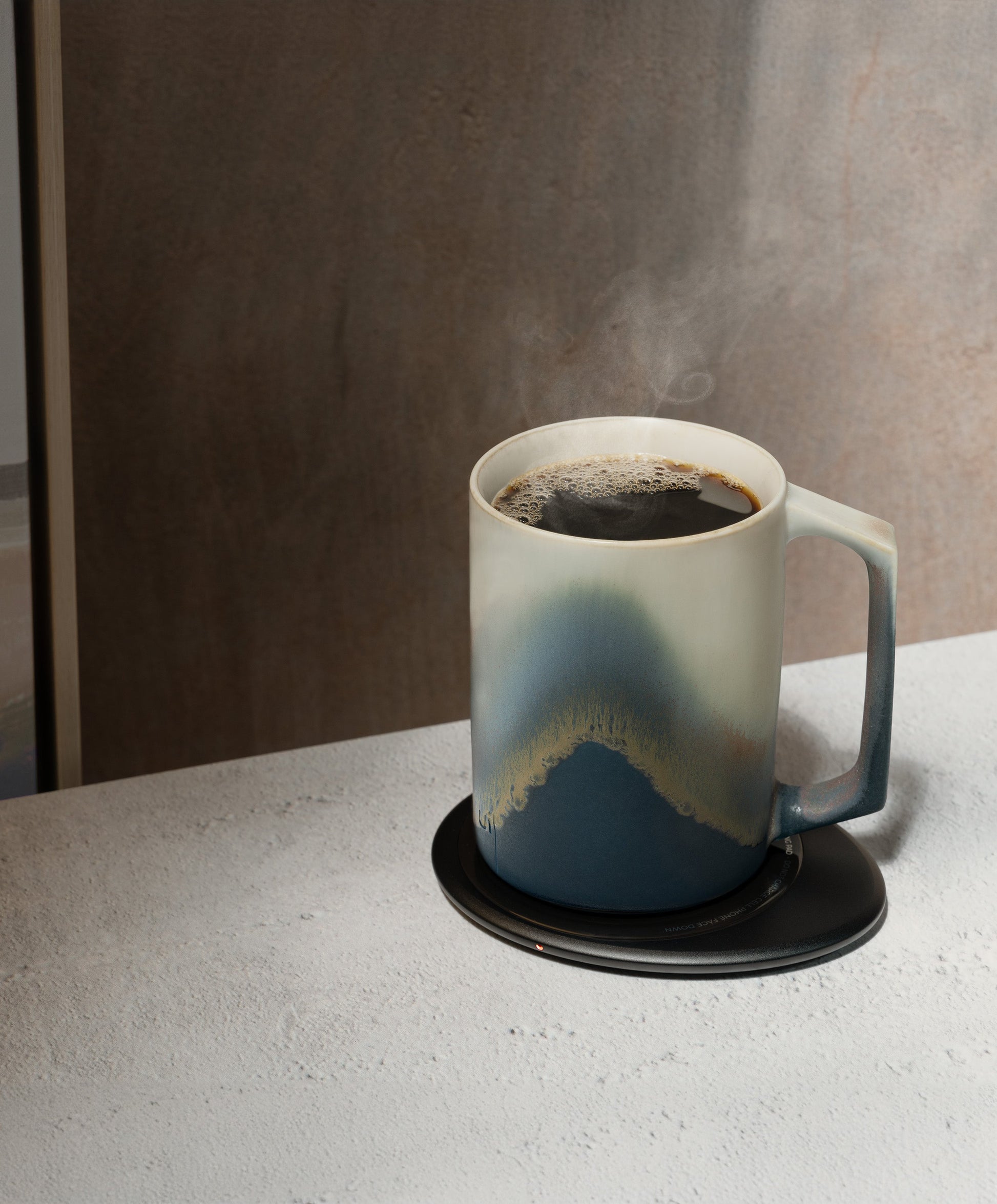 Indulge in the artistic allure of the Ui Artist Collection. Each handcrafted mug showcases a mesmerizing range of colors, elevating your daily hot beverage into a delightful sensory experience. Retaining the signature self-heating system of the Ui Mug, the Ui Artist Collection ensures your drink remains at the perfect temperature, enhancing flavor and pleasure with each sip. Yet, this is more than just a mug. It doubles as a wireless charging pad for your cell phone, blending elegance, practicality, and convenience seamlessly. Specifications: Keeps drink hot at approx. 55°C / 130°F Handcrafted fine ceramic Each mug is unique, no two mugs are alike Volume: 12 fl oz / 355 mL Fast charge cell phone & AirPods Works with other OHOM Unity products Dishwasher safe Package includes: Ui Artist Collection Mug & Lid Large strainer OHOM Pad Power adapter USB type C cable Free Standard Shipping in the Continental US
