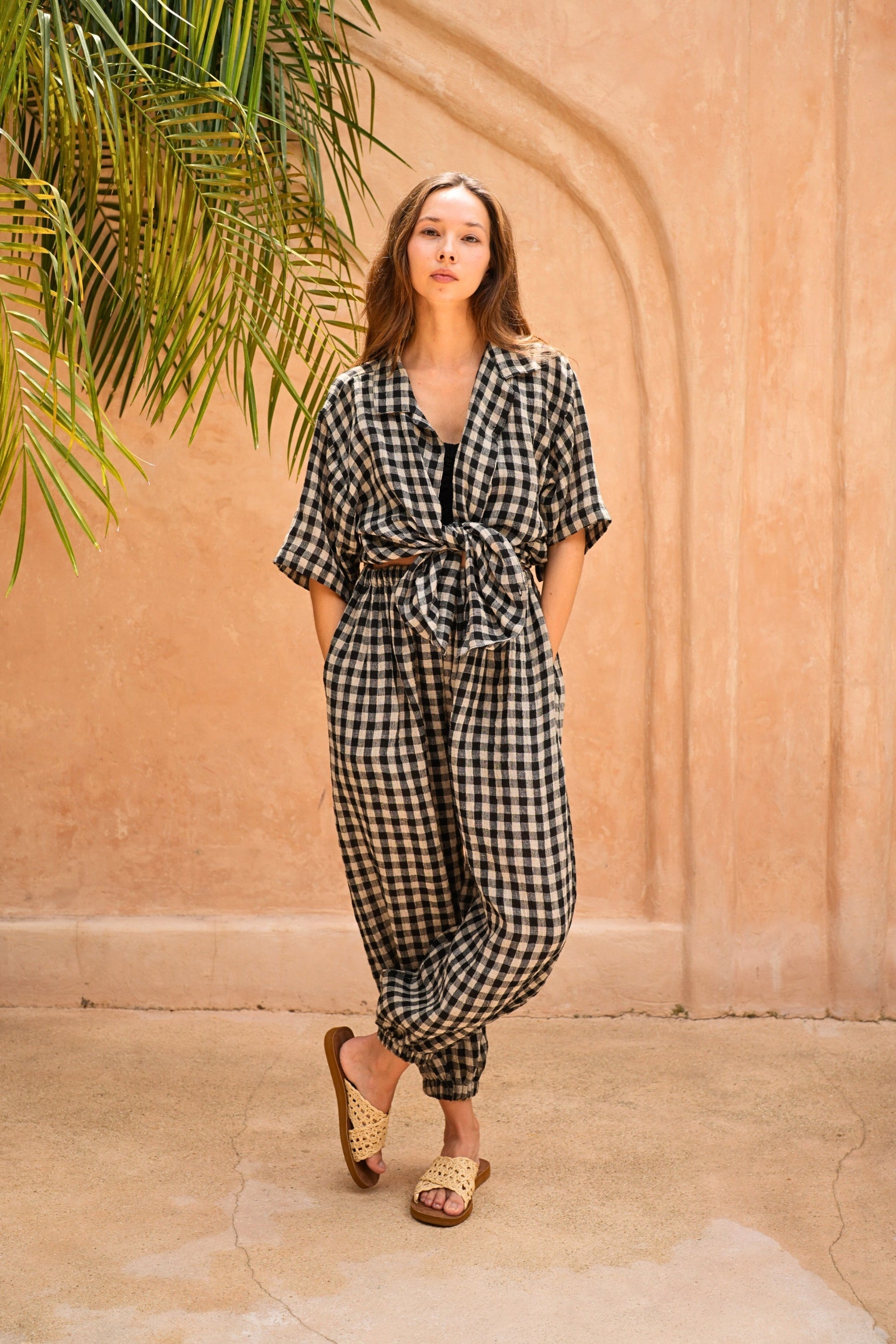 This relaxed-fit buttoned shirt is crafted from deluxe-quality 100% linen, offering a soft, breathable feel with a natural drape. Featuring a nostalgic gingham pattern, it brings timeless character and understated ease to any look. Our model is 5’7” Size S and is wearing One size. Hand wash cold. Lay flat to dry. 100% linen Handmade with love. Shipping & Returns: Return accepted for store credit only. Please see our Shipping & Returns page for more details.