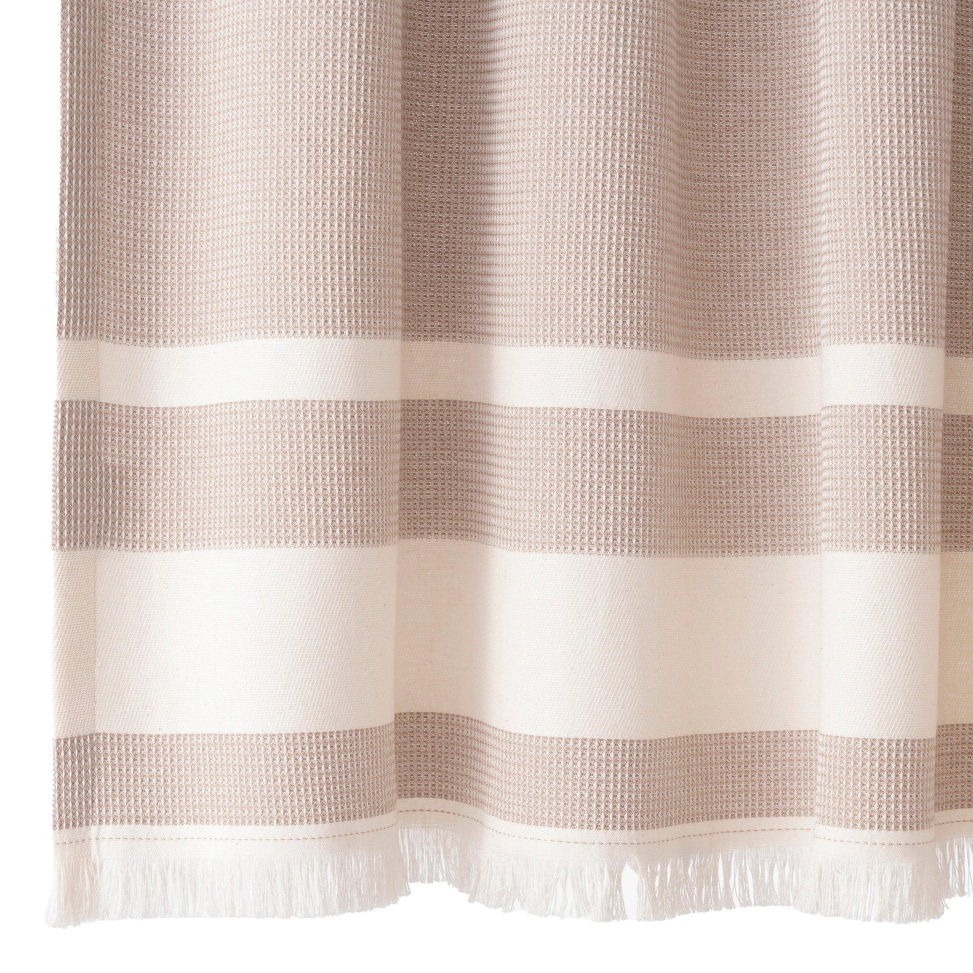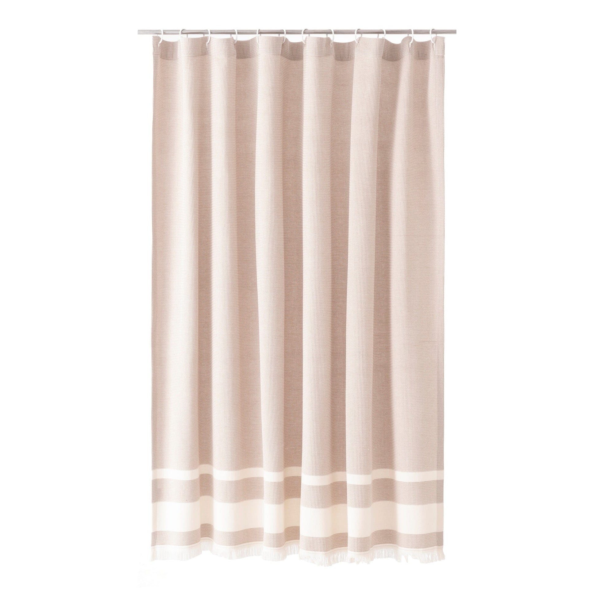 The exquisite Waffle Shower Curtain is made of premium Turkish cotton fibers and boasts a unique waffle texture that adds to its luxurious look and feel. To enhance the heirloom quality of this exquisite Shower Curtain, each fringe is carefully hand-tied with exposed threads. Its natural texture and elegant appearance make it a sophisticated addition to any bathroom, and it's sure to become your go-to Shower Curtain. Includes 12 reinforced holes to accommodate curtain rings Should be used with a liner in the appropriate size ______________________________________________ Materials: 100% Premium Turkish Cotton Size: 72"x72" and 72"x84"(Long) The length of our hand-loomed shower curtains includes the tassels and has a variation of +/- 3% Weight: 850g/30oz Care: Machine wash cold or up to 30℃ in gentle cycle. Avoid fabric softeners, dryer sheets and bleach. We recommend Air Dry as our shower curtains air dry quickly, so you may hang them to dry. Handcrafted by Olive and Linen ______________________________________________