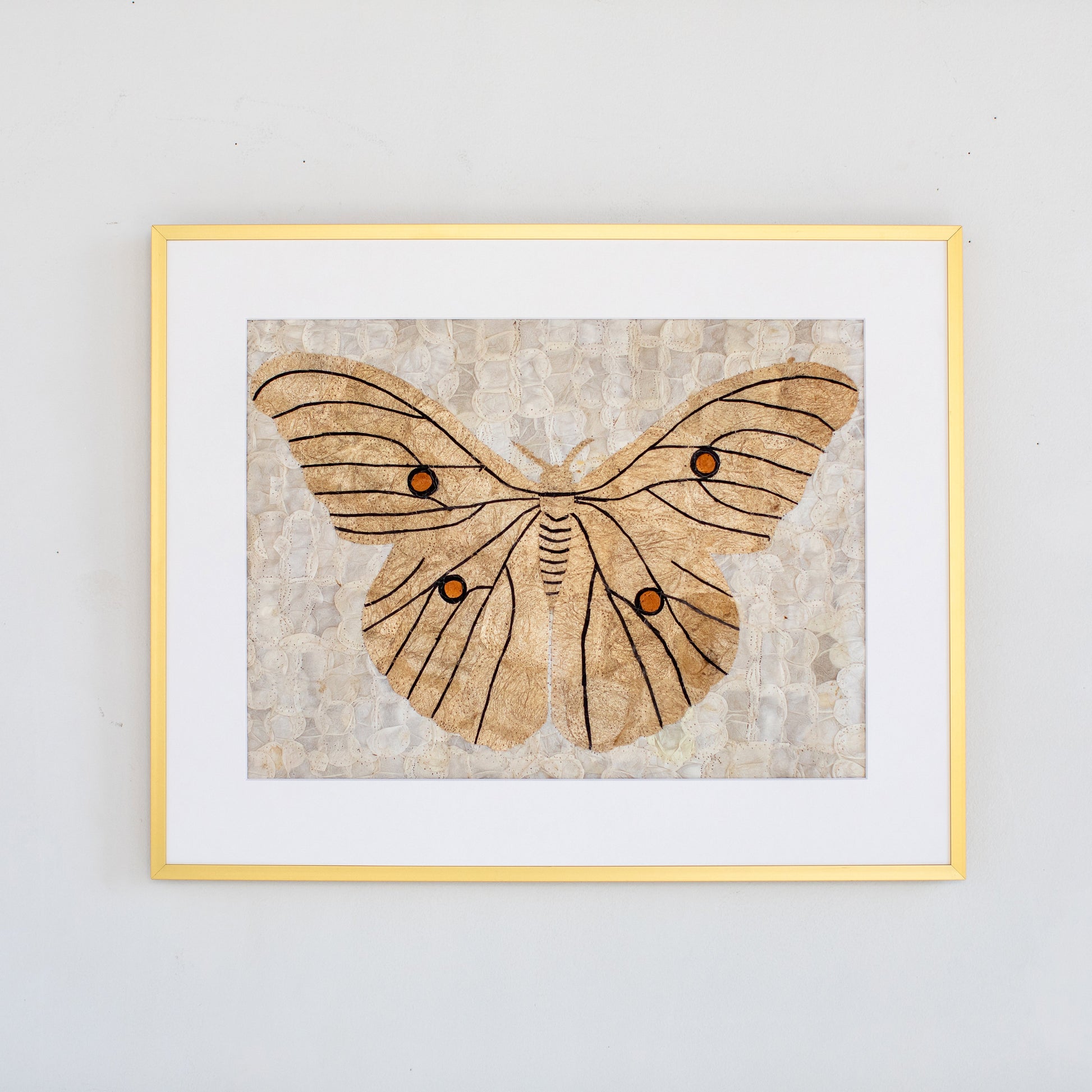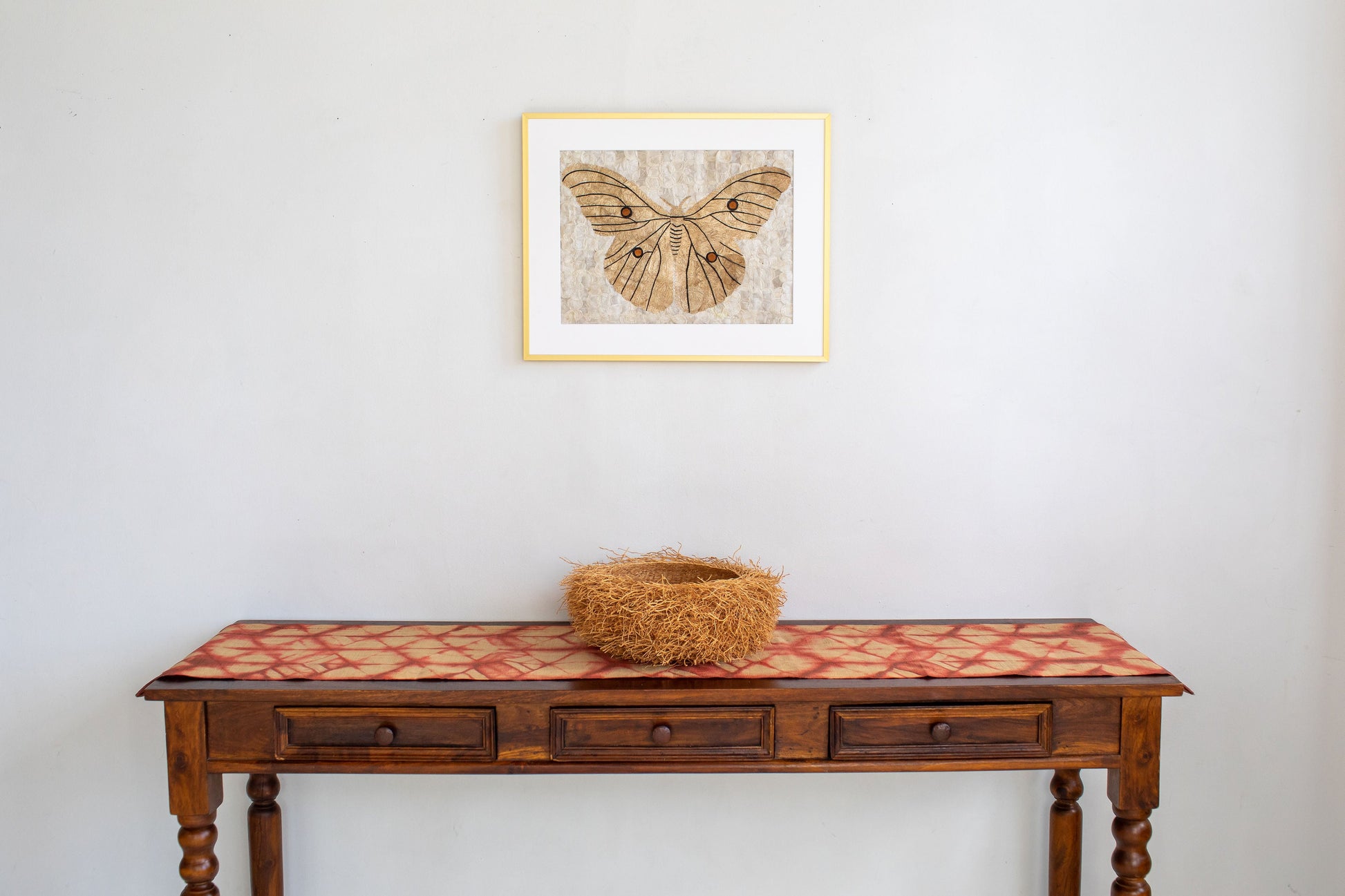 This colorful art piece represents one of Madagascar’s inhabitants most important to our project, the Ceranchia apollina wild silk moth. Not only will this bold textile look stunning on your wall, its purchase helps support our conservation efforts which directly impact the moth’s native habitat.