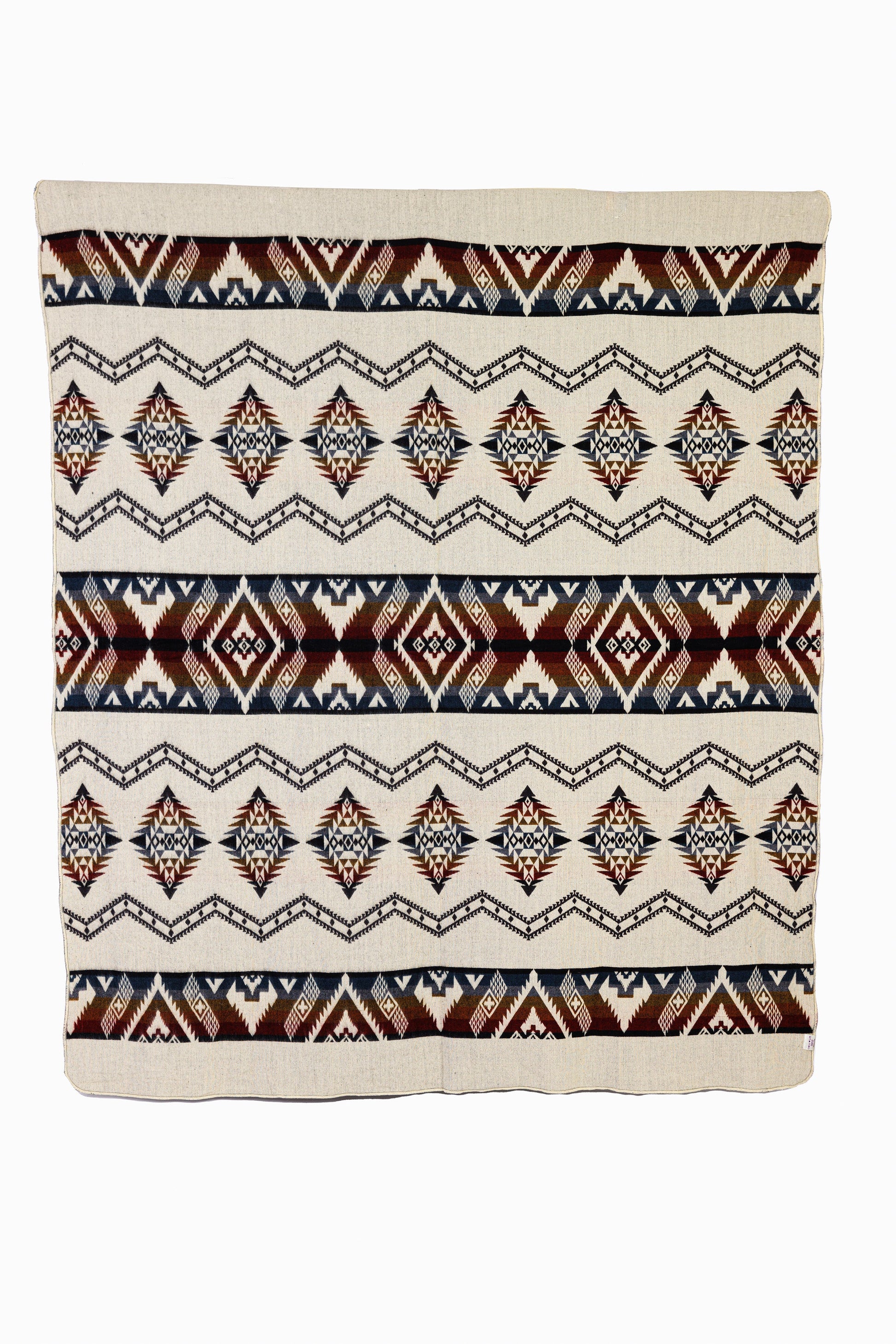 Our Wave Throw has shades of brown and dark red and is reversible. The other side features a light cream with accents of brown and dark red.
