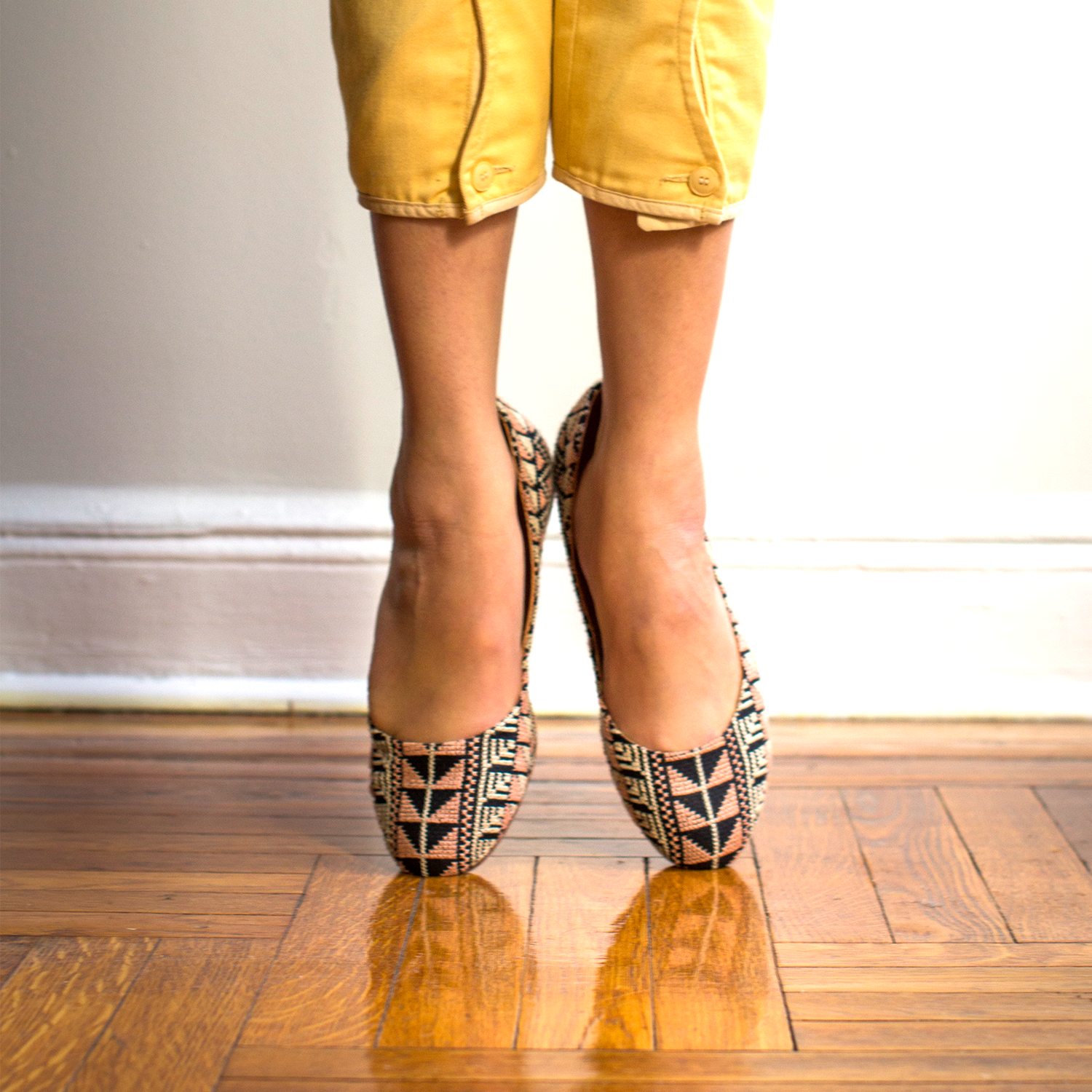 The Tatreez Flat is the perfect shoe for a day at work, running errands, or a social event. Embroidered with traditional tatreez design, this shoe will connect you with Palestinian culture. Our wares are 100% handcrafted in Palestine by women artisans who have historically faced economic marginalization. A purchase from us is more than a fashion item, it's a statement. Want to learn how our expertly hand-crafted shoes are made by third generation shoemakers in Al-Khalil (Hebron), Palestine? Check out our blog. Product Details: Leather insole Leather lining Leather & rubber outsole Locally sourced leather from Al-Khalil (Hebron) Due to the leather construction of this style, you can expect a minimal break-in period before the shoes stretch slightly and mold to the shape of your feet. The shoes will become increasingly comfortable as your unique shape forms. We offer free exchanges for US orders of any size or style. Size Guide Do you typically wear a half size? If you can sometimes wear a size smaller than the half size (i.e. size 7 to 7.5), we recommend sizing down (i.e. size 7). If you can sometimes wear a size larger than the half size (i.e. size 7.5 or 8), we recommend sizing up (i.e. size 8). Still have questions about sizing? Email us at hello@darzah.org.