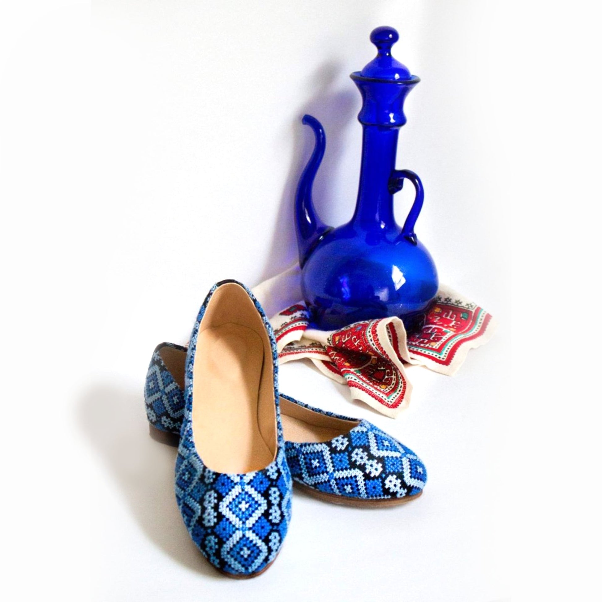 The Tatreez Flat is an ornately decorated handmade shoe that displays the traditional tatreez embroidery style. Slip these flats on for work, errands, or an upcoming social gathering. As a Fair Trade recognized brand, we provide our Palestinian women artisans economic opportunities in the face of poverty and gender inequality. Join us in our quest to empower women. Product Details: Leather insole Leather lining Leather & rubber outsole Locally sourced leather from Al-Khalil (Hebron) Due to the leather construction of this style, you can expect a minimal break-in period before the shoes stretch slightly and mold to the shape of your feet. The shoes will become increasingly comfortable as your unique shape forms. We offer free exchanges for US orders of any size or style. Size Guide Do you typically wear a half size? If you can sometimes wear a size smaller than the half size (i.e. size 7 to 7.5), we recommend sizing down (i.e. size 7). If you can sometimes wear a size larger than the half size (i.e. size 7.5 or 8), we recommend sizing up (i.e. size 8). Still have questions about sizing? Email us at hello@darzah.org.